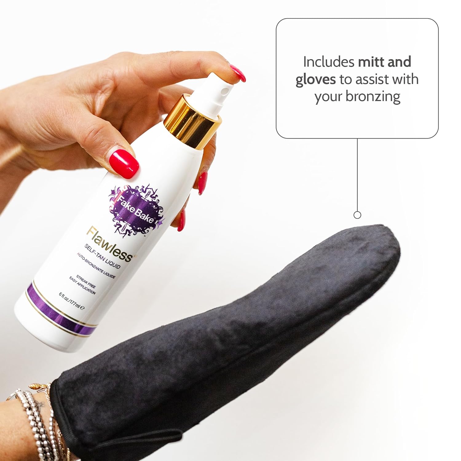 Fake Bake Flawless Self-Tanning Liquid Streak-Free, Long-Lasting Natural Glow For All Skin Tones - Sunless Tanner Includes Professional Mitt For Easy Application, Black Coconut Scent - 6 oz
