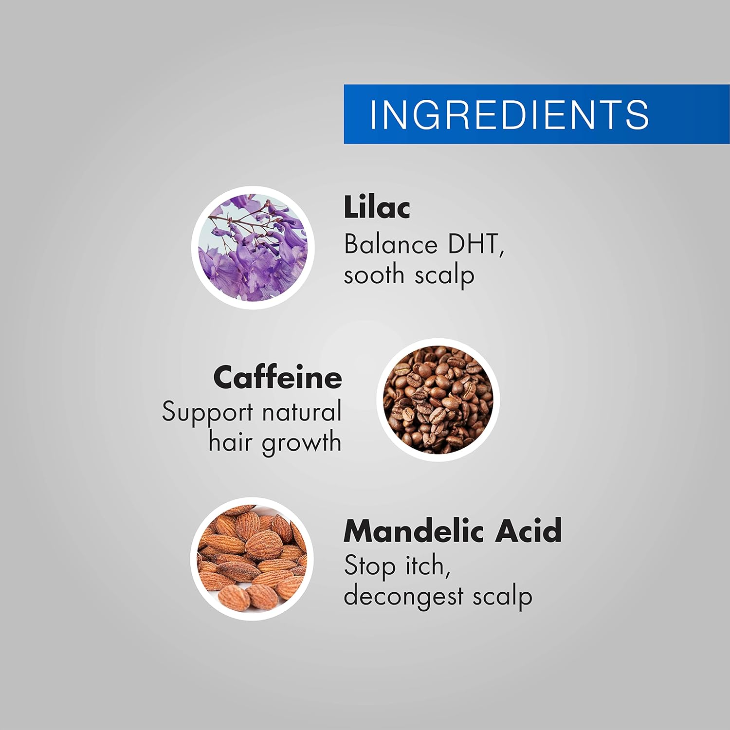 - Hair growth serum for women and men contains almond derived mandelic acid with natural properties.