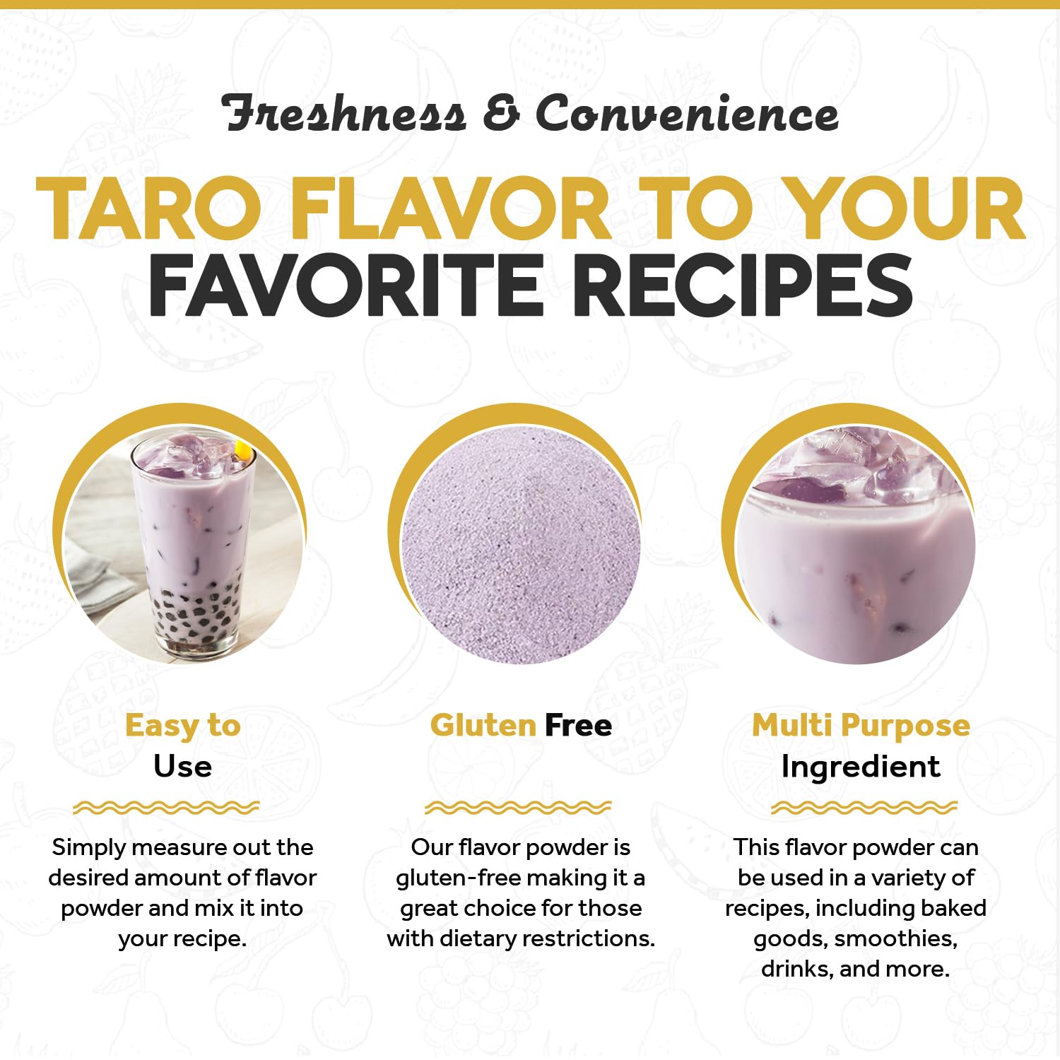 - ๐ ๐ซ๐๐ฌ๐ก๐ง๐๐ฌ๐ฌ & ๐๐จ๐ง๐ฏ๐๐ง๐ข๐๐ง๐๐ ๐ข๐ง ๐๐ฏ๐๐ซ๐ฒ ๐๐ฌ๐: The resealable bag that our Taro Bubble Tea Flavoring Powder comes in makes it easy to store and use. You can keep it in your pantry or kitchen cabinet and pull it out whenever you want to add some nutty Taro Bubble Tea Flavoring Powder to your creations.