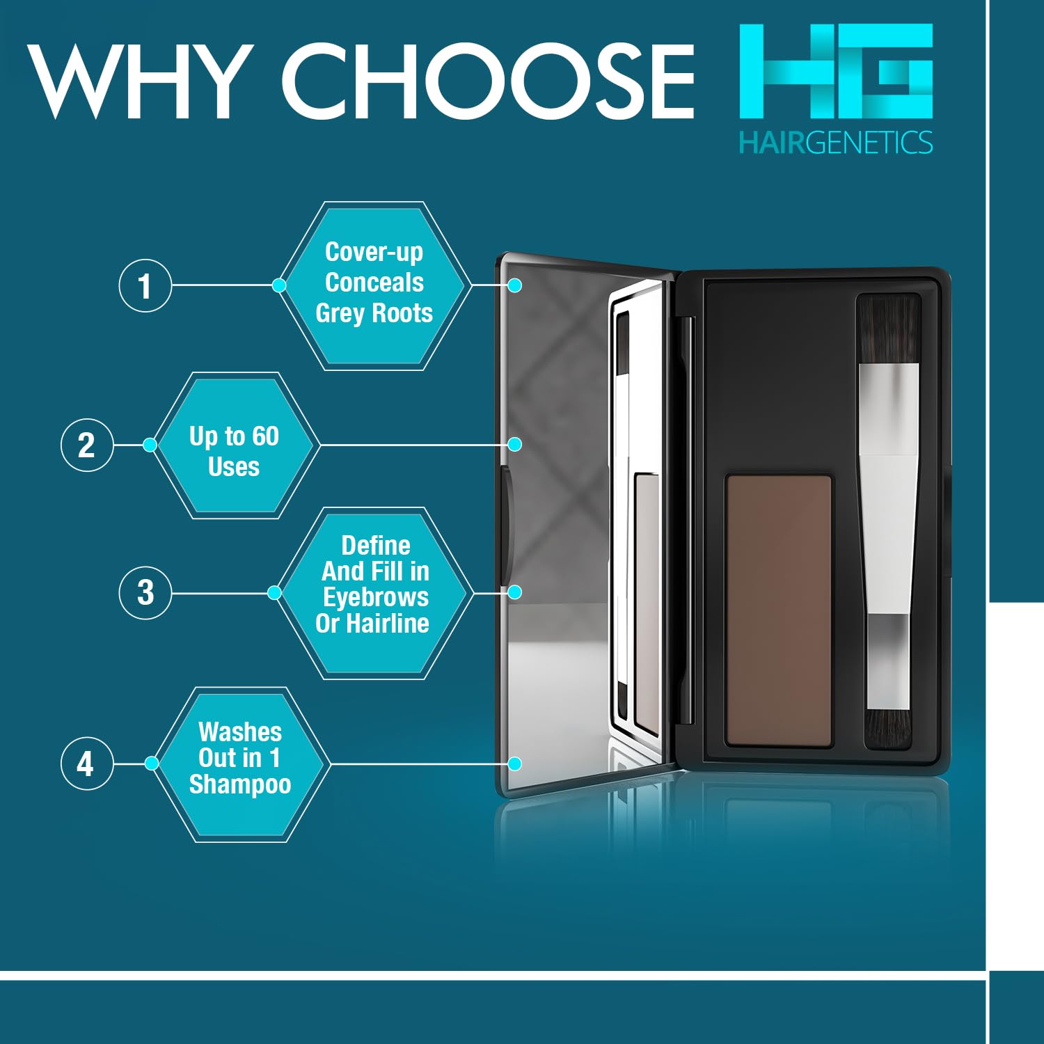 - GRAY HAIR COVERAGE TOUCH UP : Hair Genetics Root Cover Up conceals grey roots with precision easily and quickly. It is a perfect solution to cover grey roots, fill in eyebrows and thicken beards