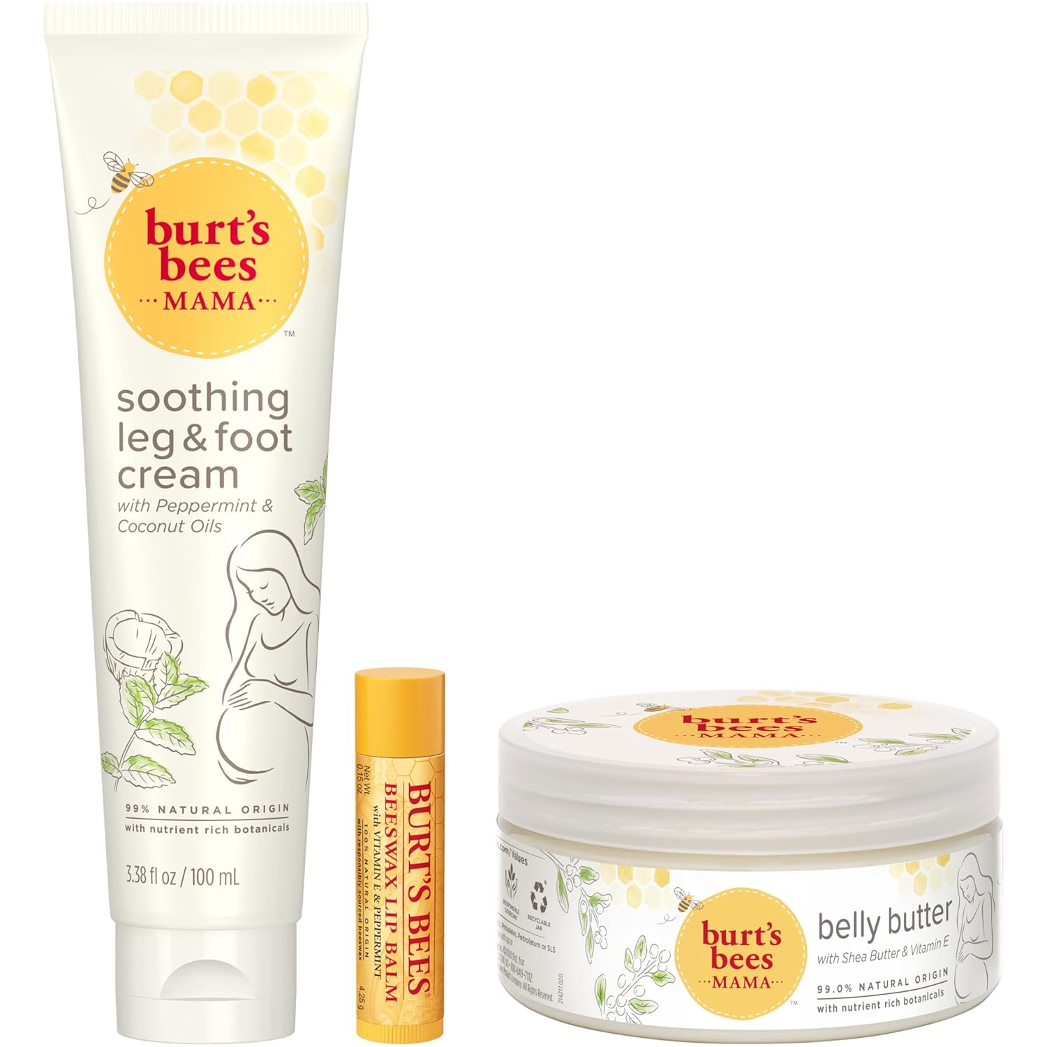 Burt's Bees Pregnancy Essentials Gifts Set, 3 Giftable Baby Shower Products & Must Have Baby Registry Items, Nourishing Skincare - Mama Belly Butter, Original Lip Balm, Leg & Foot Cream