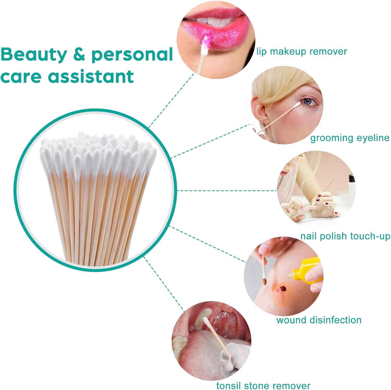 - Multifuctional Usage: 6 in cotton swabs special for makeup & makeup remover application, wound care, precision household cleaning, painting, art & crafts. Also can be used as tonsil stone remover, long cleaning swabs for dog.