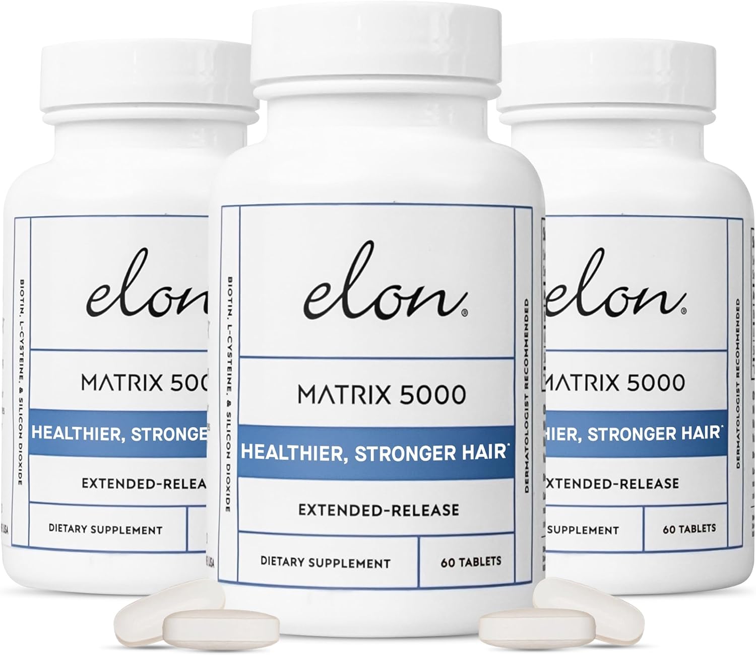 - ELON MATRIX 5000 –- Our Biotin 5000 mcg hair supplement contains the right spectrum of pharma-grade ingredients that support hair growth, boosts keratin and provides essential hair growth vitamins and minerals that promote stronger, longer hair.