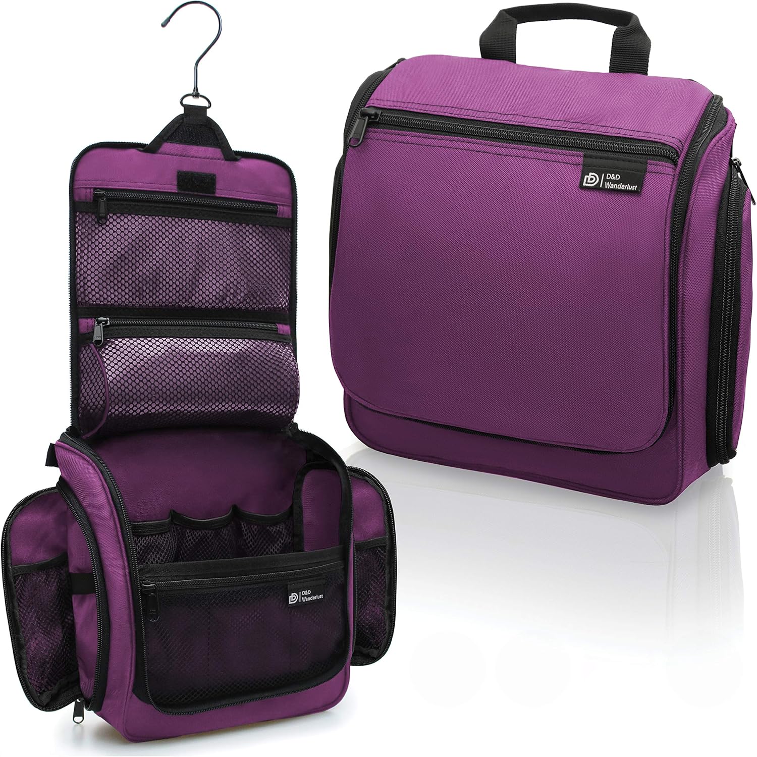 D&D Hanging Travel Toiletry Bag for Men and Women – Large Cosmetics, Makeup and Toiletries Organizer Kit with 10 Compartments, YKK Zippers, XXL Metal Swivel Hook, Water-Resistant Nylon