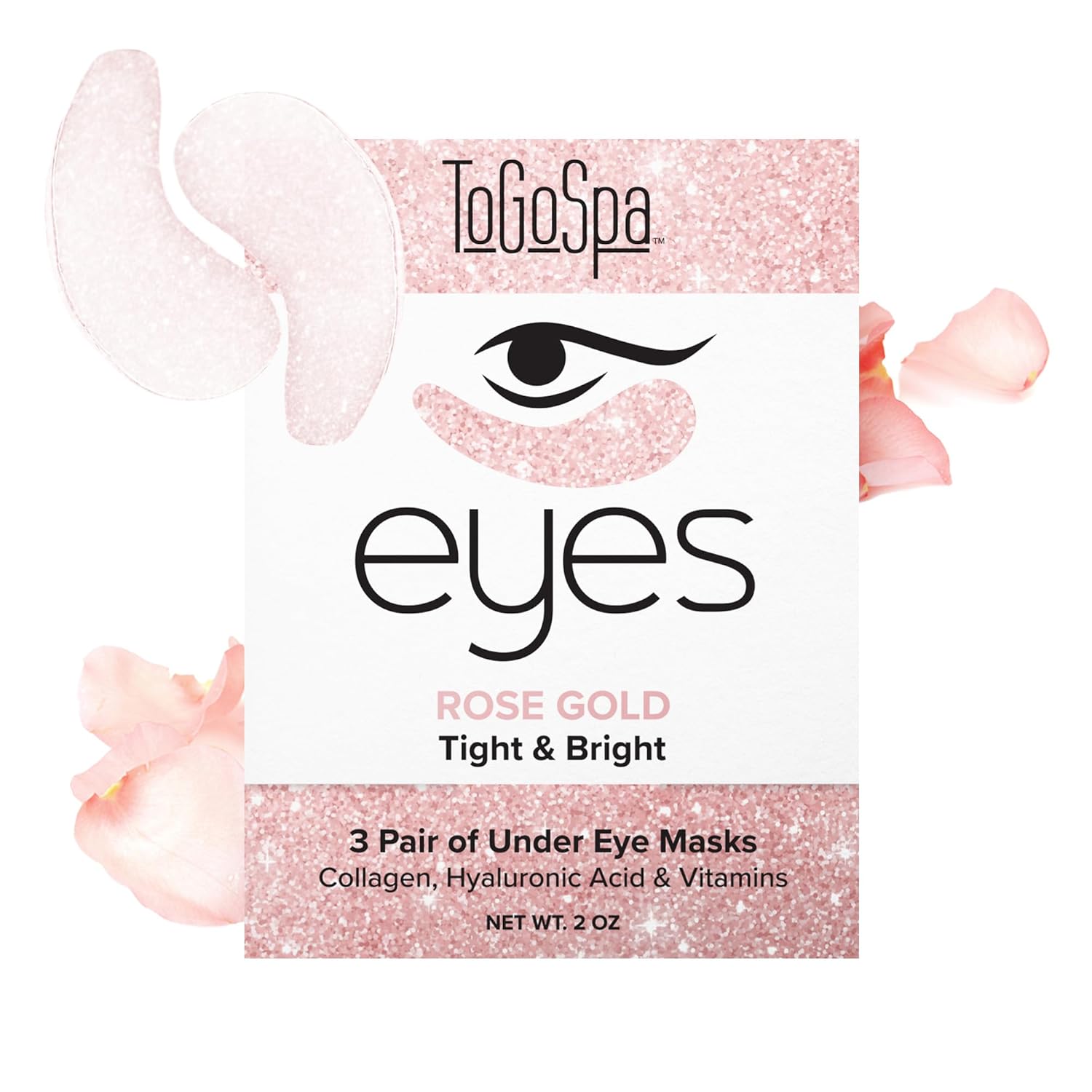 ToGoSpa Rose Gold EYES, Dark Circle Warrior | Premium Clean Anti-Aging Gel Pads with Collagen, Hyaluronic Acid, Aloe Vera, Vitamins C & E, 1 Pack - 3 Pair