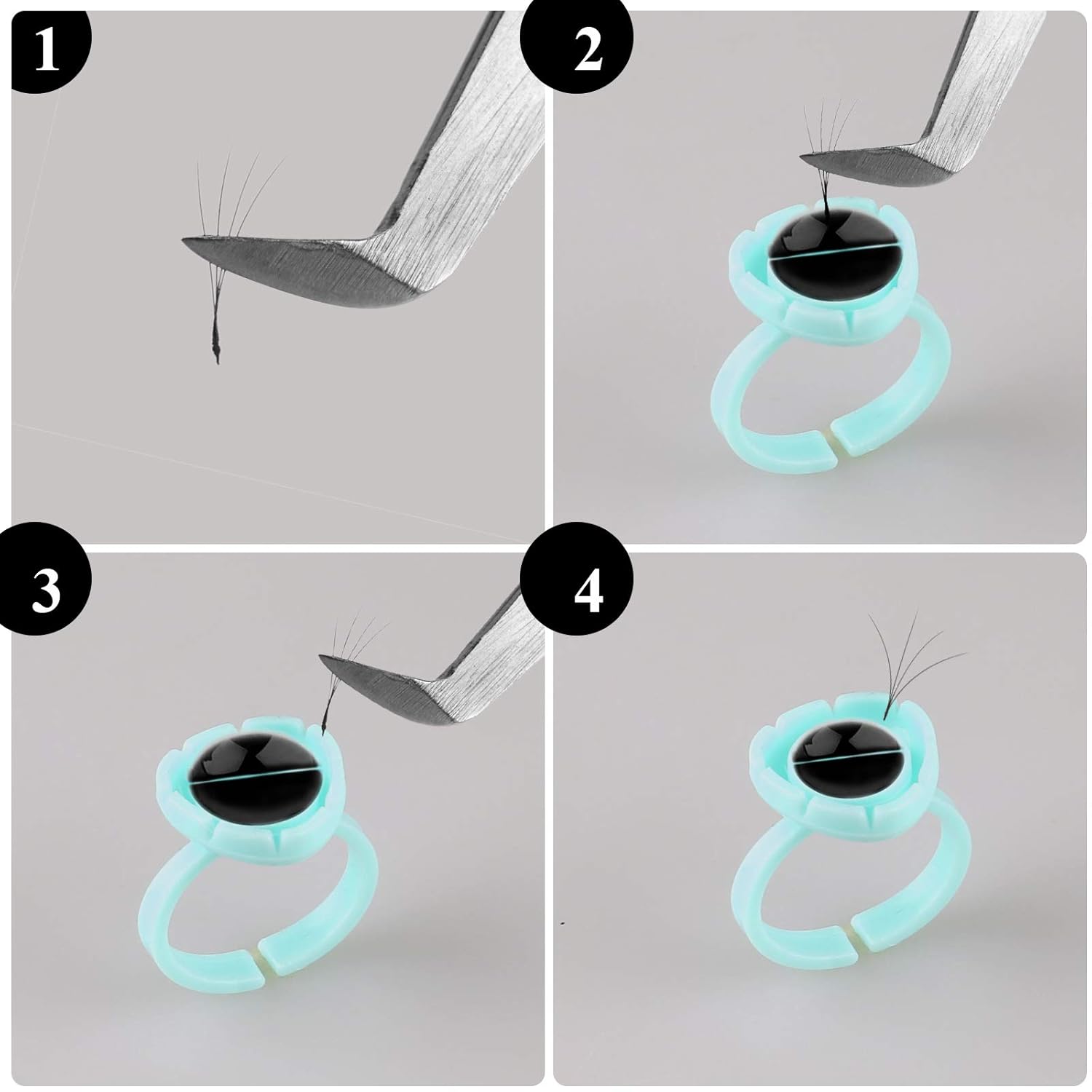 - 2 in 1 Holder for Glue and Individual Lashes: The smart glue cups have a gap of smart design at the ring which can fix the eyelashes. You can dip the glue so convenient during the application procedure. Also you can still wear it on your finger as usual.