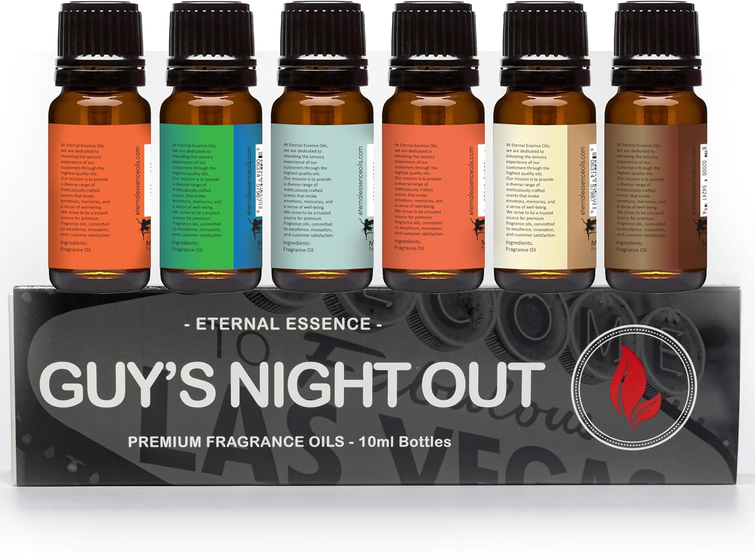 Eternal Essence Oils Guy's Night Out Set of 6 Premium Fragrance Oils - Includes Including Happy Men, Blue Sage, White Sand, Warm Rustic Woods, Musk, and White Musk Scented Oils - 10ML