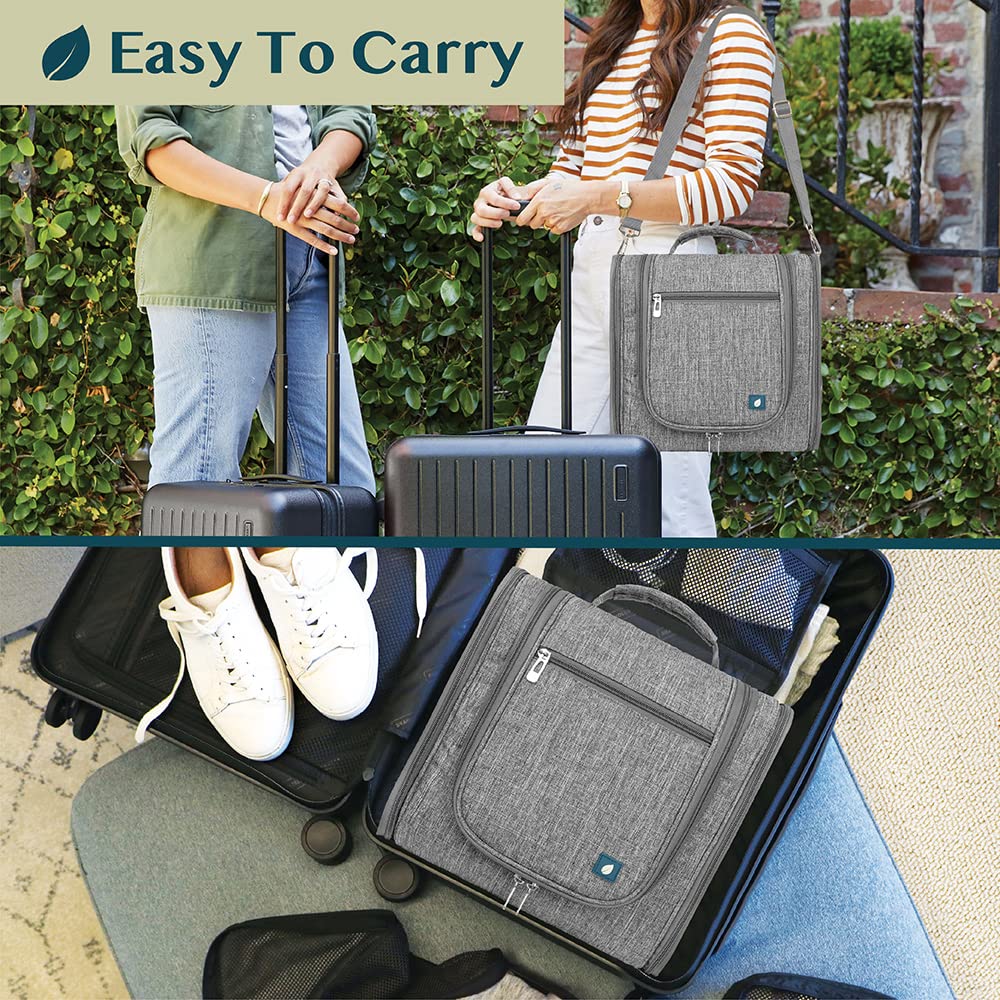 PAVILIA Extra Large Toiletry Bag Travel Bag for Women Men, Hanging Cosmetic Organizer, Water Resistant Makeup Bag for Accessories Toiletries, Travel Essentials Kit (Grey)