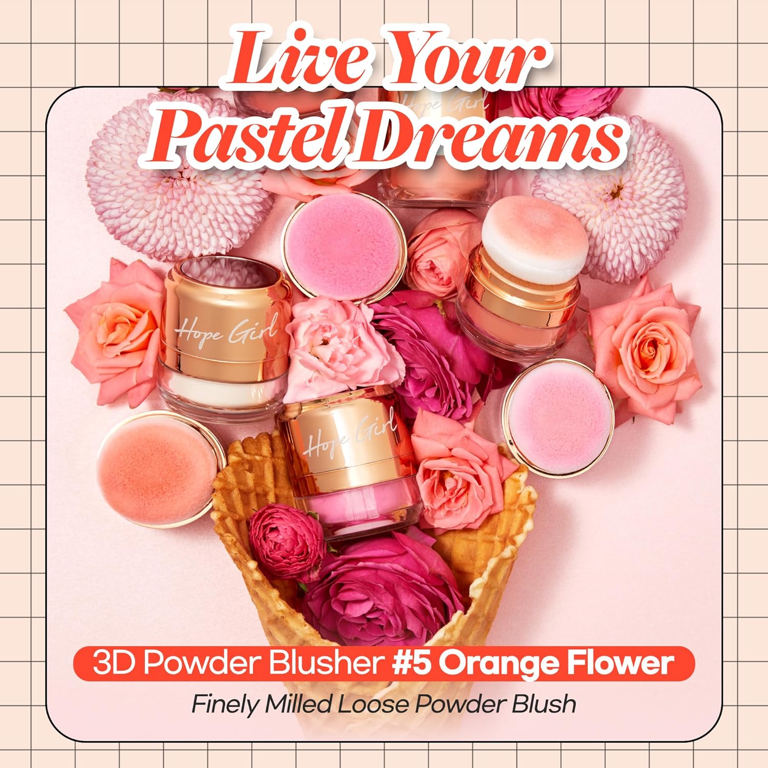 Hope Girl 3D Powder Blusher 0.17oz | Skin-Loving Korean Mini Blush for Cheeks and Eye Makeup w/Allantoin | K Beauty Cool Toned Vibrant Sunkissed Fine Powder Makeup Blush Cosmetics (#05 Orange Flower)