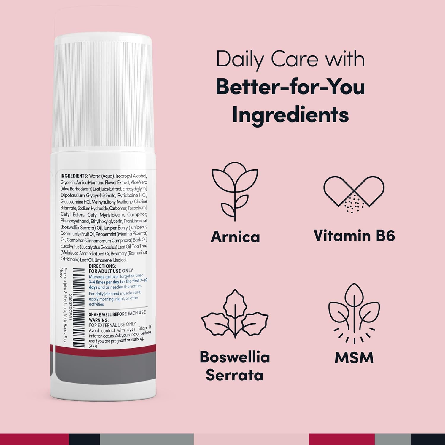 - The Penetrex Difference: Our proprietary blend of natural ingredients leverages the power of arnica, vitamin B6 and MSM to penetrate deeply for joint and muscle discomfort at the source