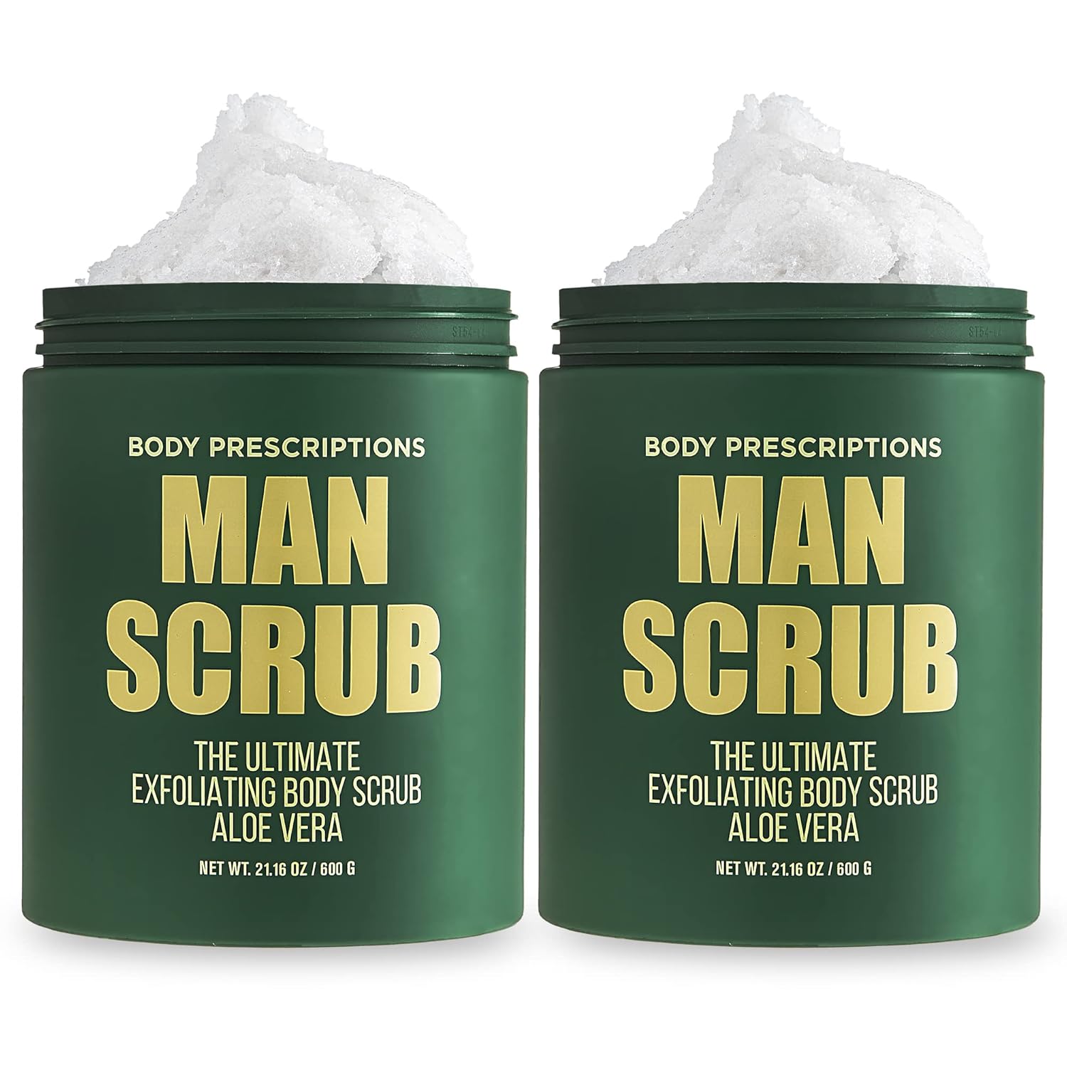 - RELAX + REFRESH: Delight your senses and relax at home with this 2 pack, 21.06 oz each ultimate exfoliating body scrub from body prescriptions. The “Man Scrub” comes in a largejar with an easy-to-use twist off top.