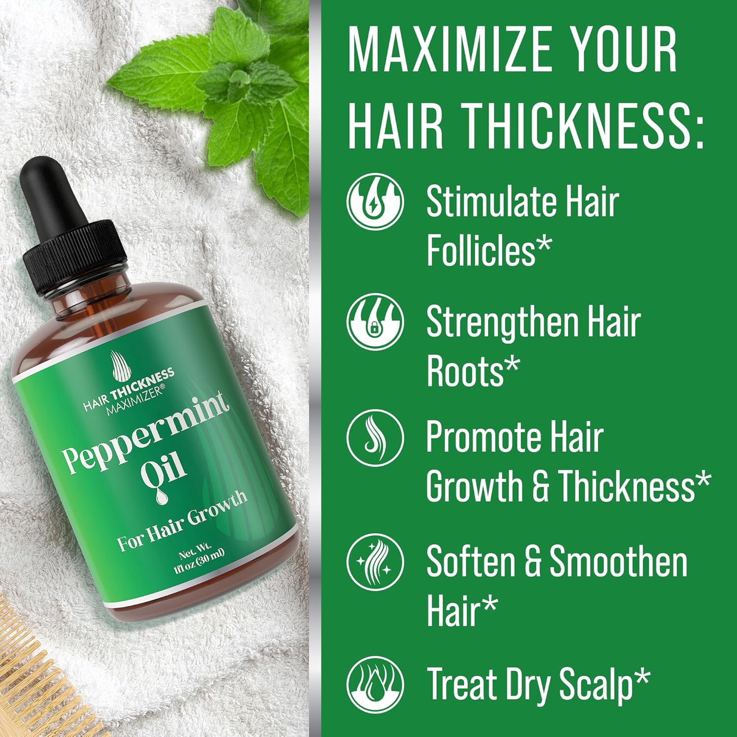 - Peppermint Power For Hair: Forget generic oils; Our peppermint hair growth oil 1oz is all about promoting hair growth. Our peppermint oil for hair growth is non-toxic, clean, sustainable, and cruelty-free, making you feel great about your hair