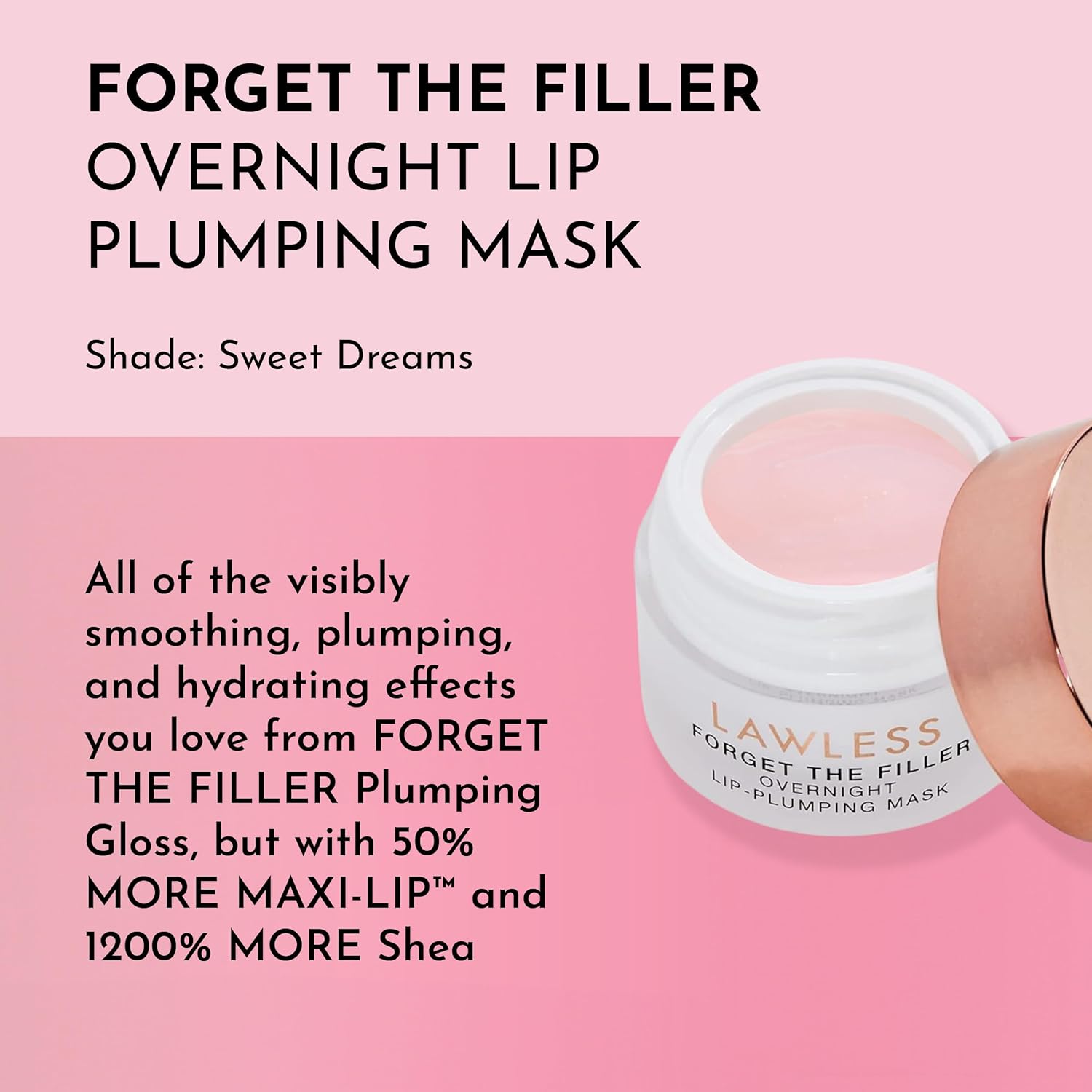- Why You'll Love It: Experience all the plumping and hydrating effects you love from FORGET THE FILLER Plumping Gloss, but with 50% more MAXI-LIP and 1200% more Shea Butter. This luxurious lip mask deeply hydrates and soothes the lips while strenghtening the lip barrier.