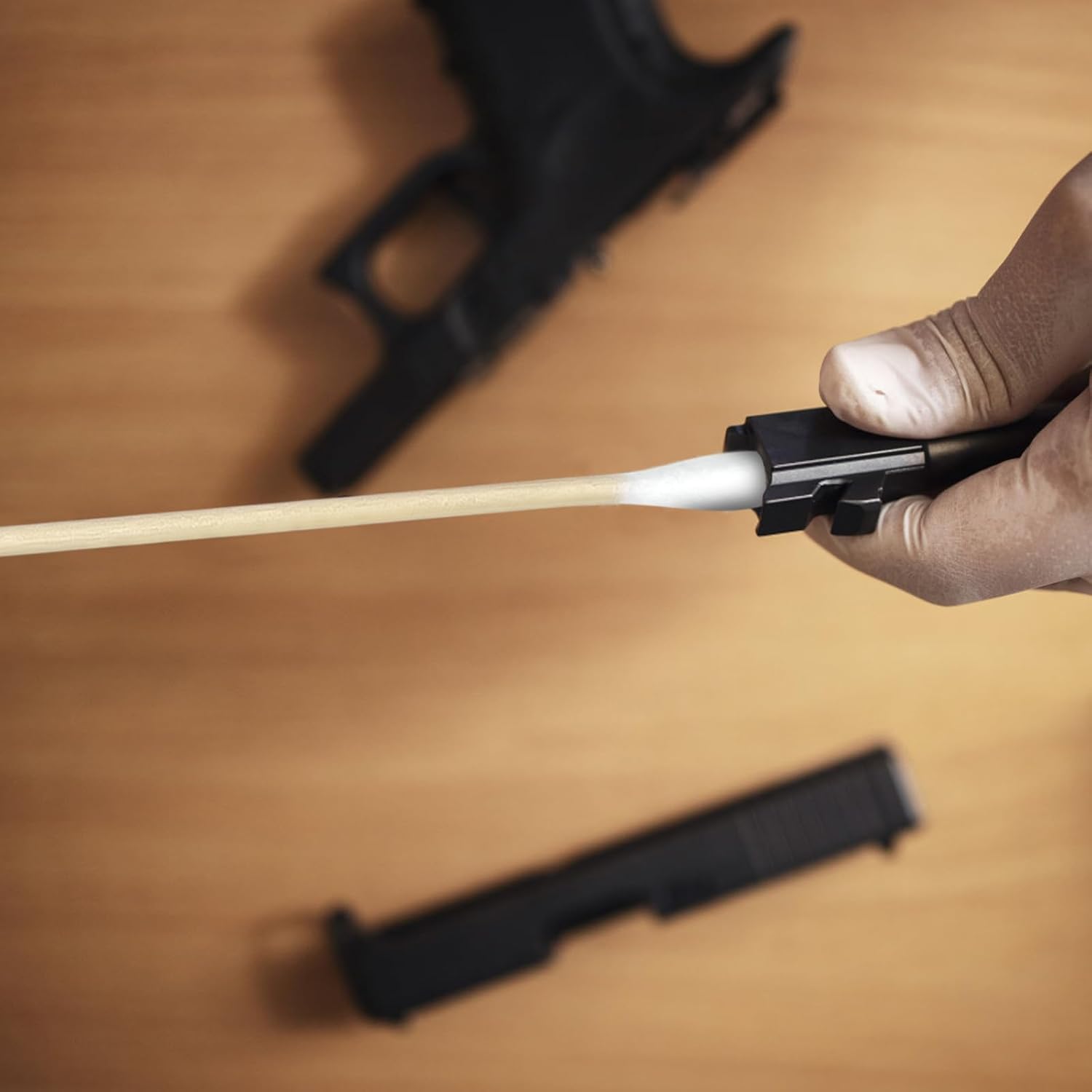 - Lint-free cotton tips: Our swabs are made with high-quality, lint-free cotton tips that won't leave any fibers or debris behind. This is essential for maintaining the accuracy and reliability of your firearm.