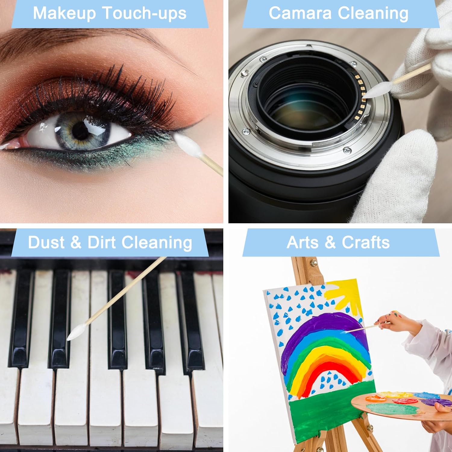 - Get versatility and easily tackle different cleaning tasks with our set of 100 pointed tip and 100 round tip swabs. The pointed tips are perfect for precision cleaning in tight spaces, while the round tips are more suitable for broader cleaning tasks.
