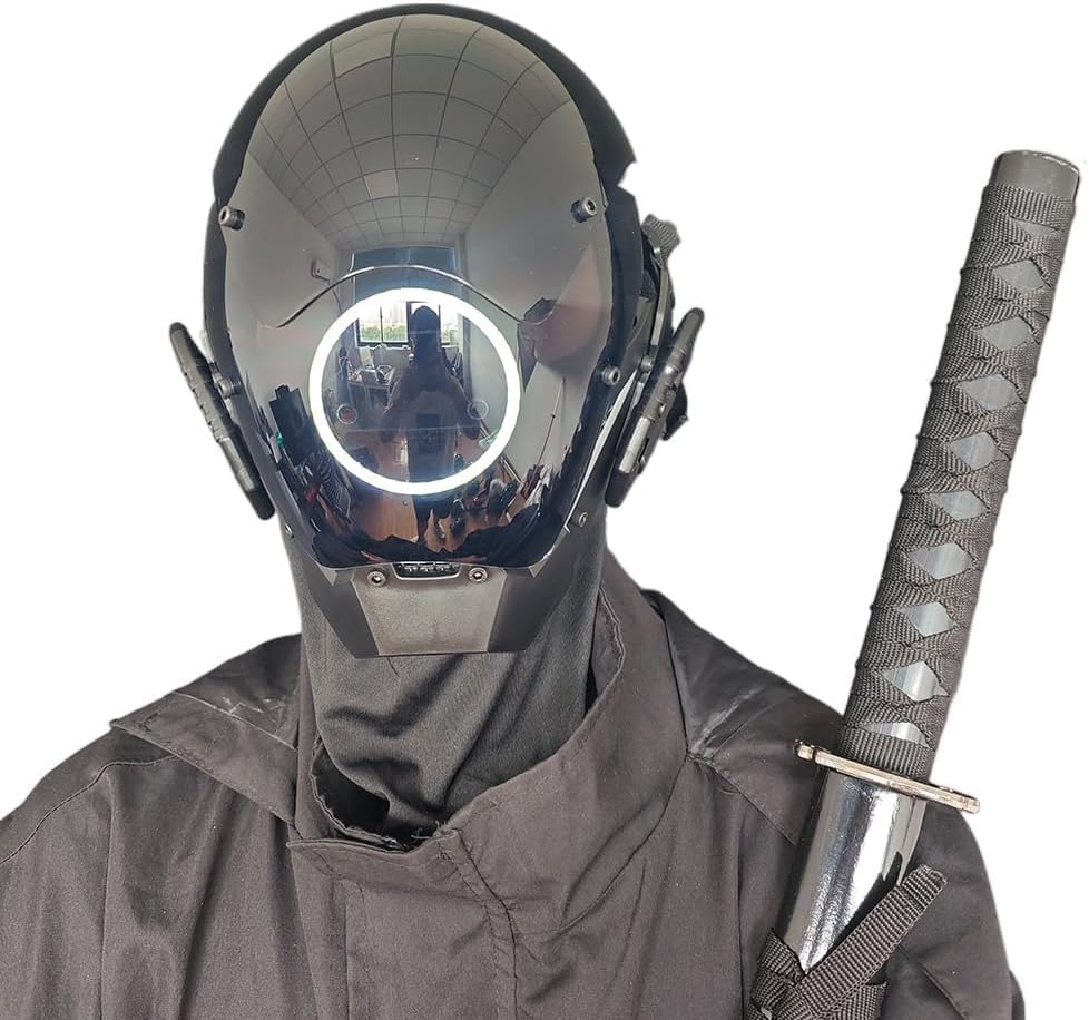 KYEDAY Punk Mask Cosplay for Men, LED Round Light Mask for Women Cosplay Halloween Fit Party Music Festival Accessories