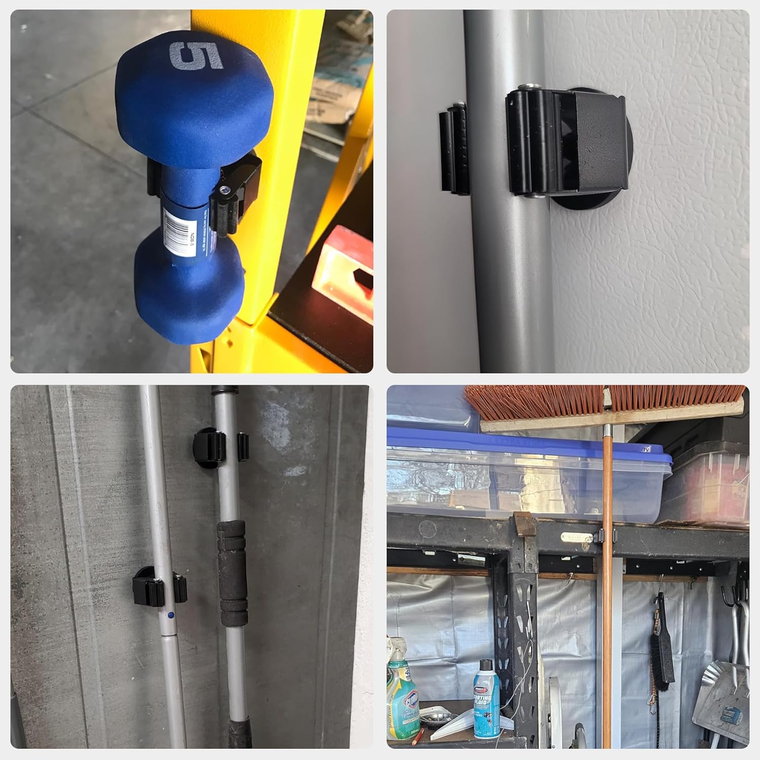 - Non-scratch Broom Holder with Gripper: Anti-rust and anti-scratch, 4PCS magnetic mount heavy-duty magnetic mop holder can stick firmly to any ferrous metal surface and will not damage or scratch tool boxes, tool cabinets, or metal cabinets
