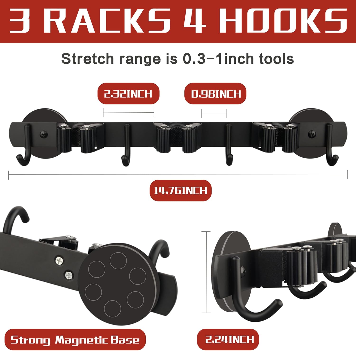 - [Strong Rubber Coated Magnetic Base]: The rubber material can provide good slip resistance, and the hook is not easy to slide or fall. The rubber coated base can prevent scratching to avoid damaging the surface of the item