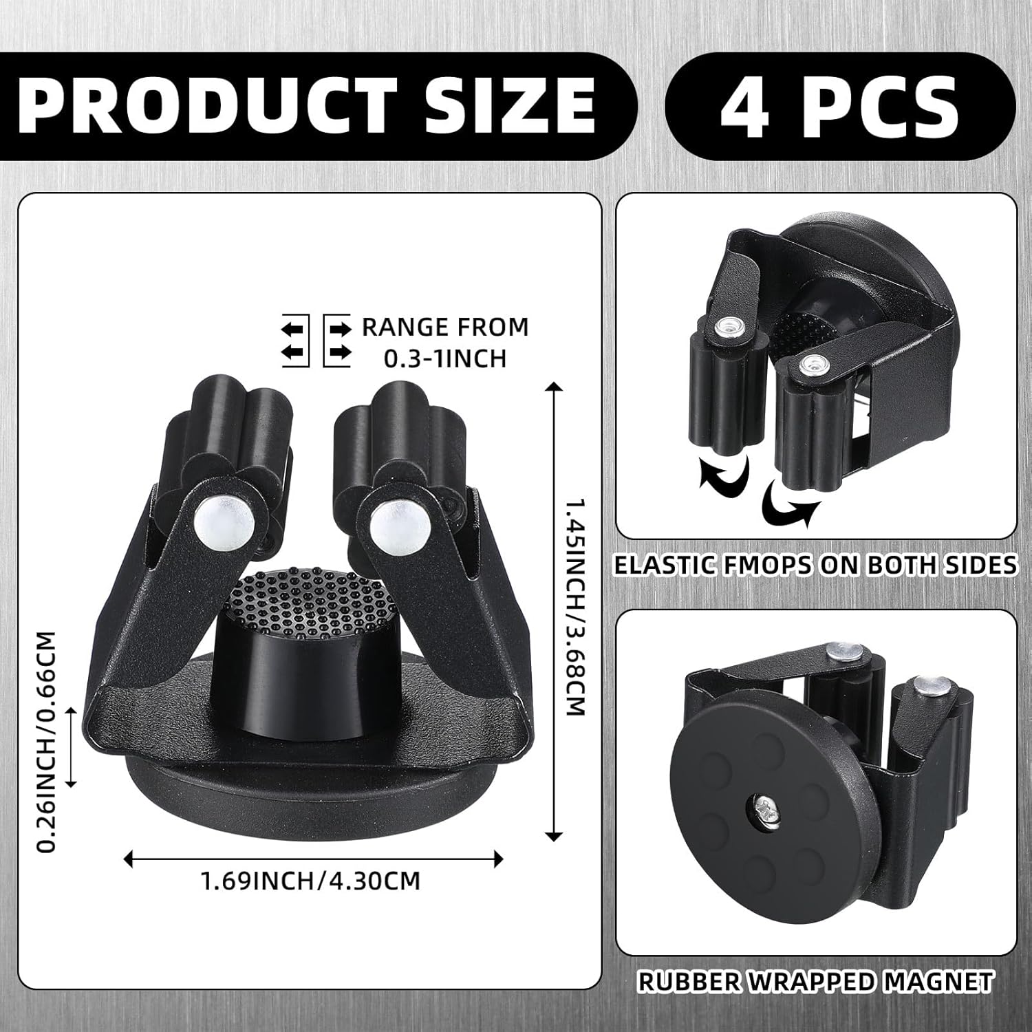 4 Pcs Magnetic Mop Broom Holder Movable Magnetic Broom Holder Rack, Anti Slip Wall Mounted Utility for Cleaning Tools, Garage, Kitchen, Laundry, Garden (Black)