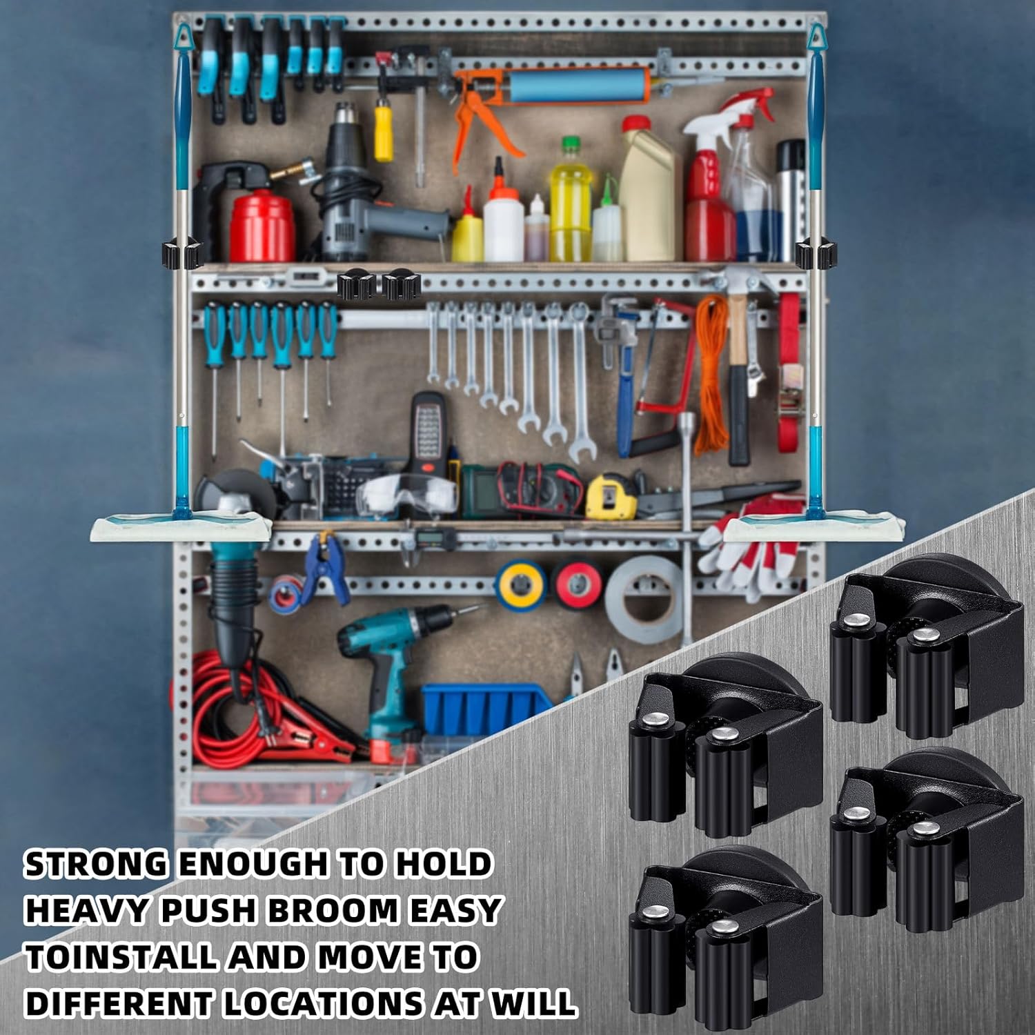 - Moveable Design: this broom and mop holder feature a moveable design, offering the flexibility to adjust the arrangement to suit your preference or needs; Enjoy the convenience of customizing your space and keeping your cleaning tools exactly where you want them