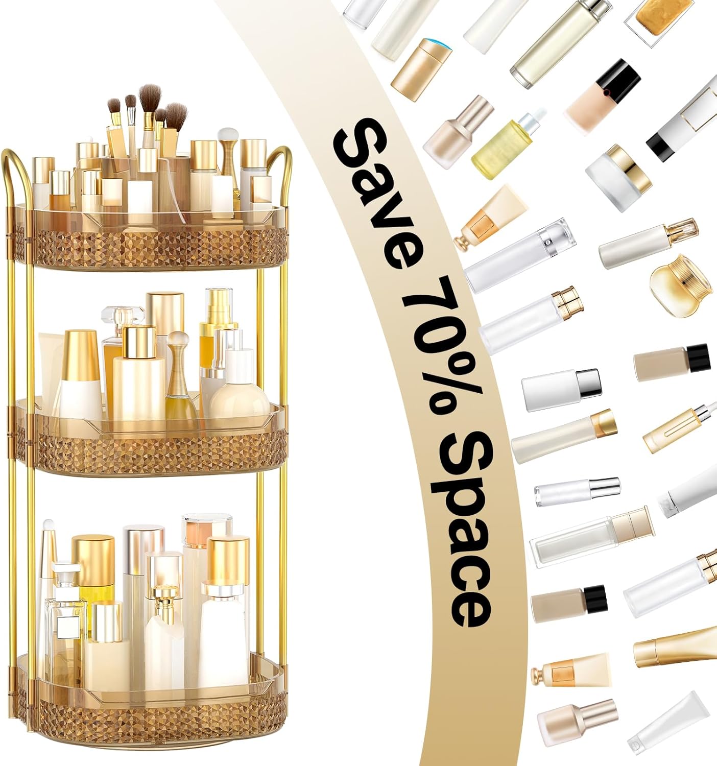 - Spinning Organizer: Truly find items in a second with the 360 rotating makeup organizer, all you have to do is turn it around and the items on the inside are easily accessible. Gentle and stable turntable, no need to worry about the cosmetics being knocked over while spinning