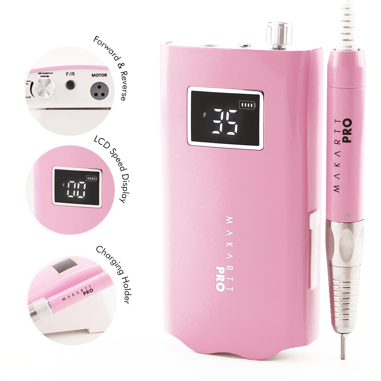- Variable Speed Control & Reverse Switch: Adjust speeds precisely to match the task at hand, with forward/reverse modes for versatility in nail care techniques.