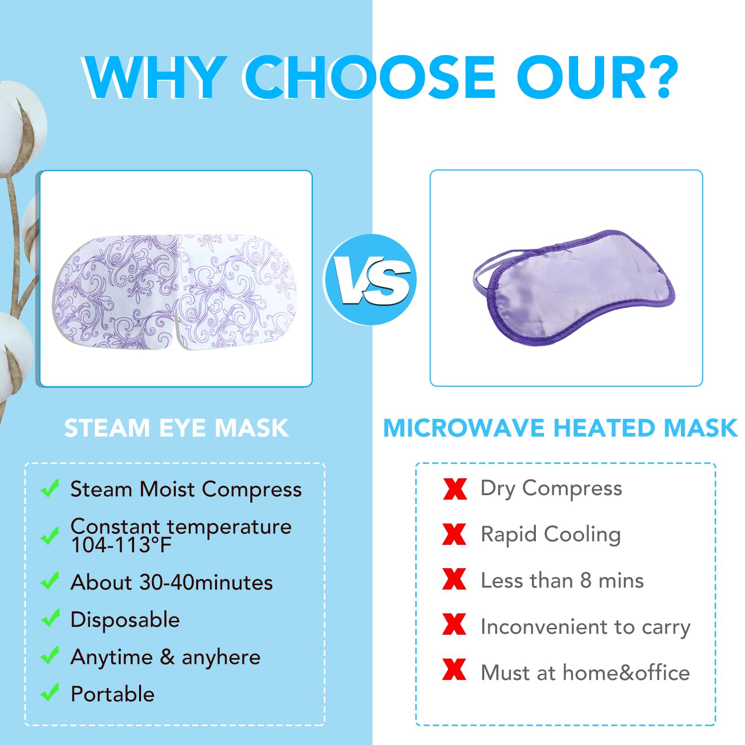 - 【Upgrade Steam Eye Mask】The self heating steam eye mask is made of high-quality cotton non-woven fabric, which is comfortable and skin friendly, fits the eyes well, and effectively reduces problems such as dryness, swelling, and dark circles under the eyes. Steam eye masks can release warm steam, promote blood circulation in the eyes, quickly relax eye muscles, and make the eyes glow naturally.