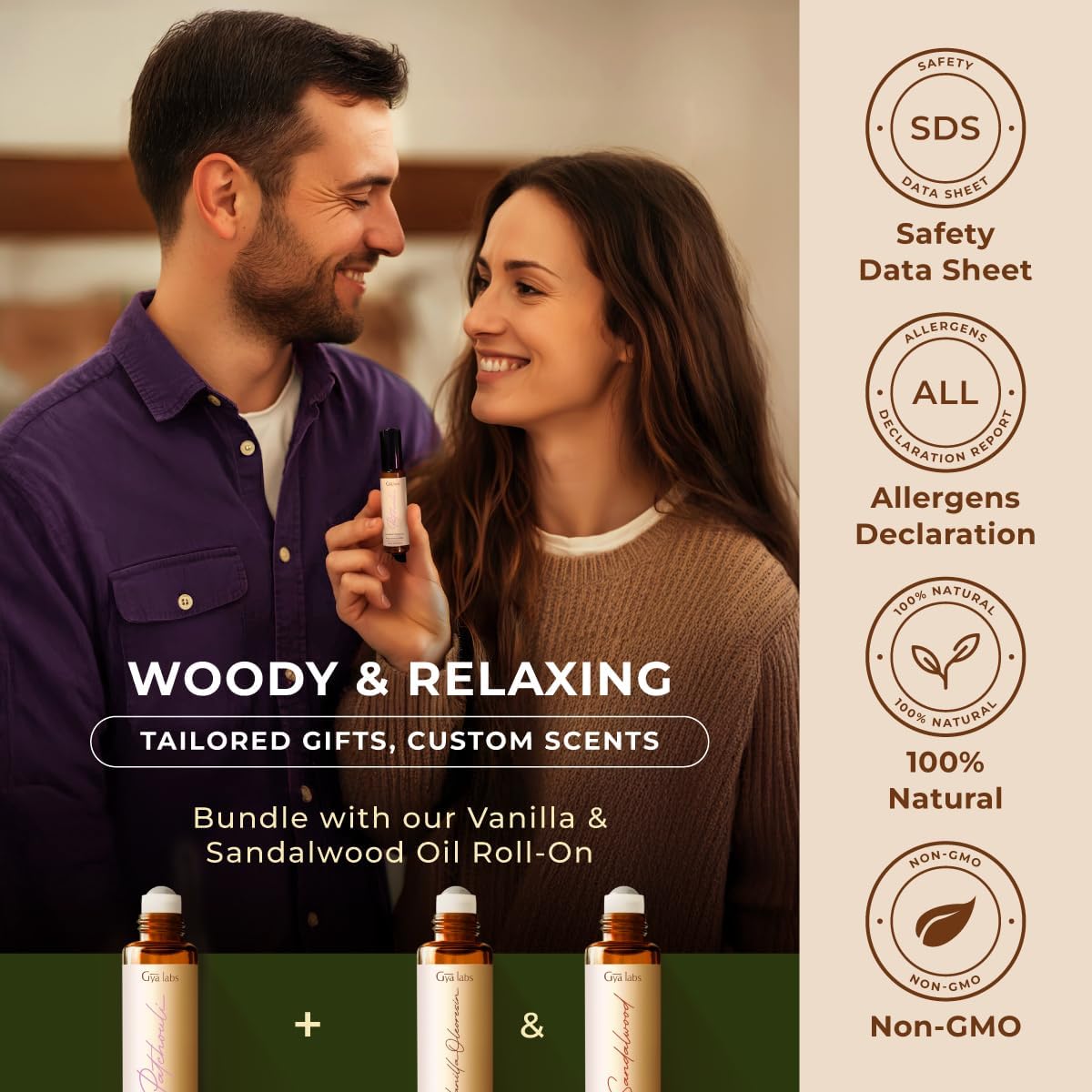 Gya Labs Patchouli Roll On, Luxurious Aroma for Confidence and Allure - Patchouli Essential Oil Roll On for Tranquillity and Inner Peace - 0.34 Fl Oz - Travel-Sized Convenience and Quick Absorption