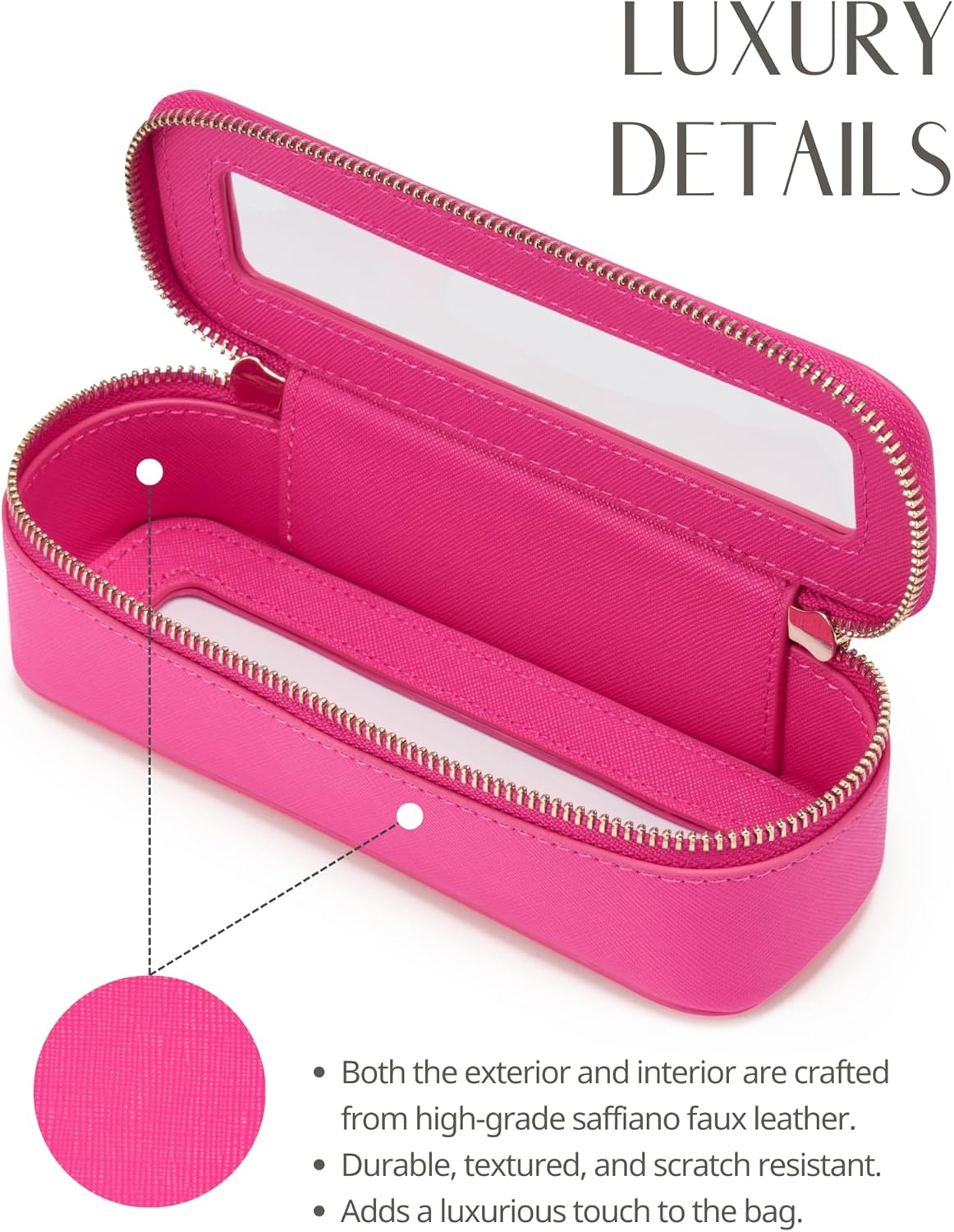 - [Slim Brush Makeup Bag] - This slim makeup bag is 7.5'' x 2.5'' x 2.1'' (19.1cm x 6.4cm x 5.3cm), ideal for storing makeup brushes and daily mini essentials like lip balms, hair ties, jewelry, Air Pods, charging cords, and medications. Slip it into your purse, backpack, everyday tote, or travel bag for convenient access to your essentials.