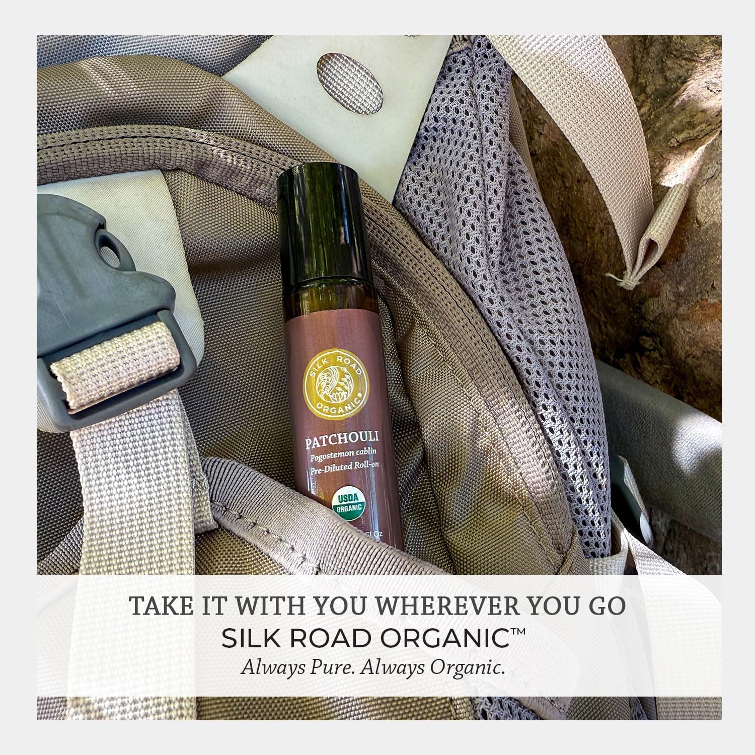 Silk Road Organic Patchouli Essential Oil Roll On, 100% Pure USDA Certified Aromatherapy - Uplift Mood, Enhance Attraction, Rejuvenate & Nourish Skin - 10 ml Roller