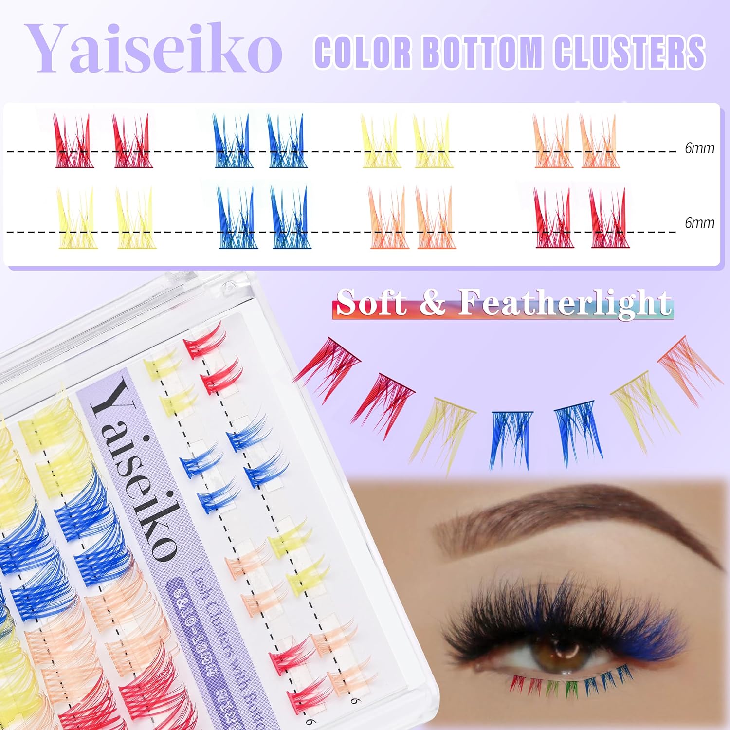 - Color : Color Lash Clusters with Bottom Lashes(6mm,10-18mm)