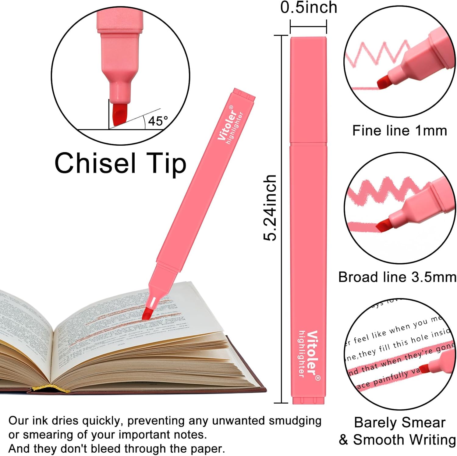- 【Smooth Writing】The Vitoler highlighters are perfect for highlighting your scriptures, notes, journals, or any books you want to read. Free-flowing ink with a soft chisel tip lets you write everything smoothly.