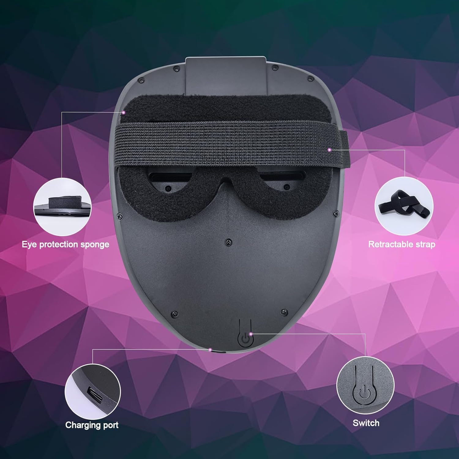 - [Comfortable to Wear] This digital electronic mask for men/kids is designed to be ergonomic. It is made of tough plastic and soft sponge, and a soft interior and pre-cut eyeholes ensure a comfy fit all day. Besides, the Led face mask and the materials used have been tested and have certificates to ensure the safety of daily wearing.