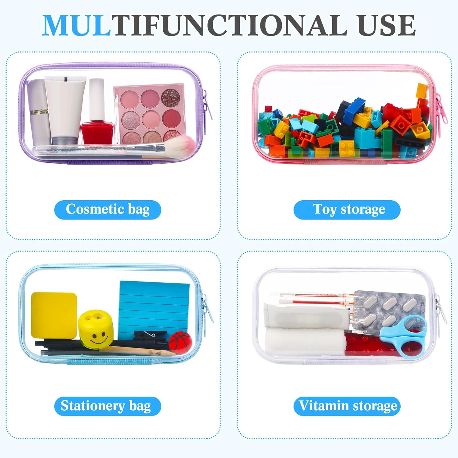 - Durable PVC Material: crafted from 0.8 mm thick PVC material, these hard plastic zipper cases are designed for durability and resilience; The robust construction withstands daily wear and tear, protecting your items while maintaining a sleek and clear appearance; Featuring a smooth double zipper design, these cases open and close effortlessly