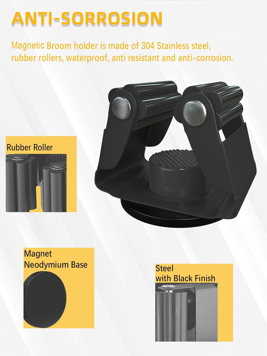 - Steel Material: magnetic broom and mop holder for fridge is made of sus304 stainless steel; anti corrosion and tarnishing; adapting rubber roller; building to resist daily scratches; much strong and sturdy than plastic one in the market