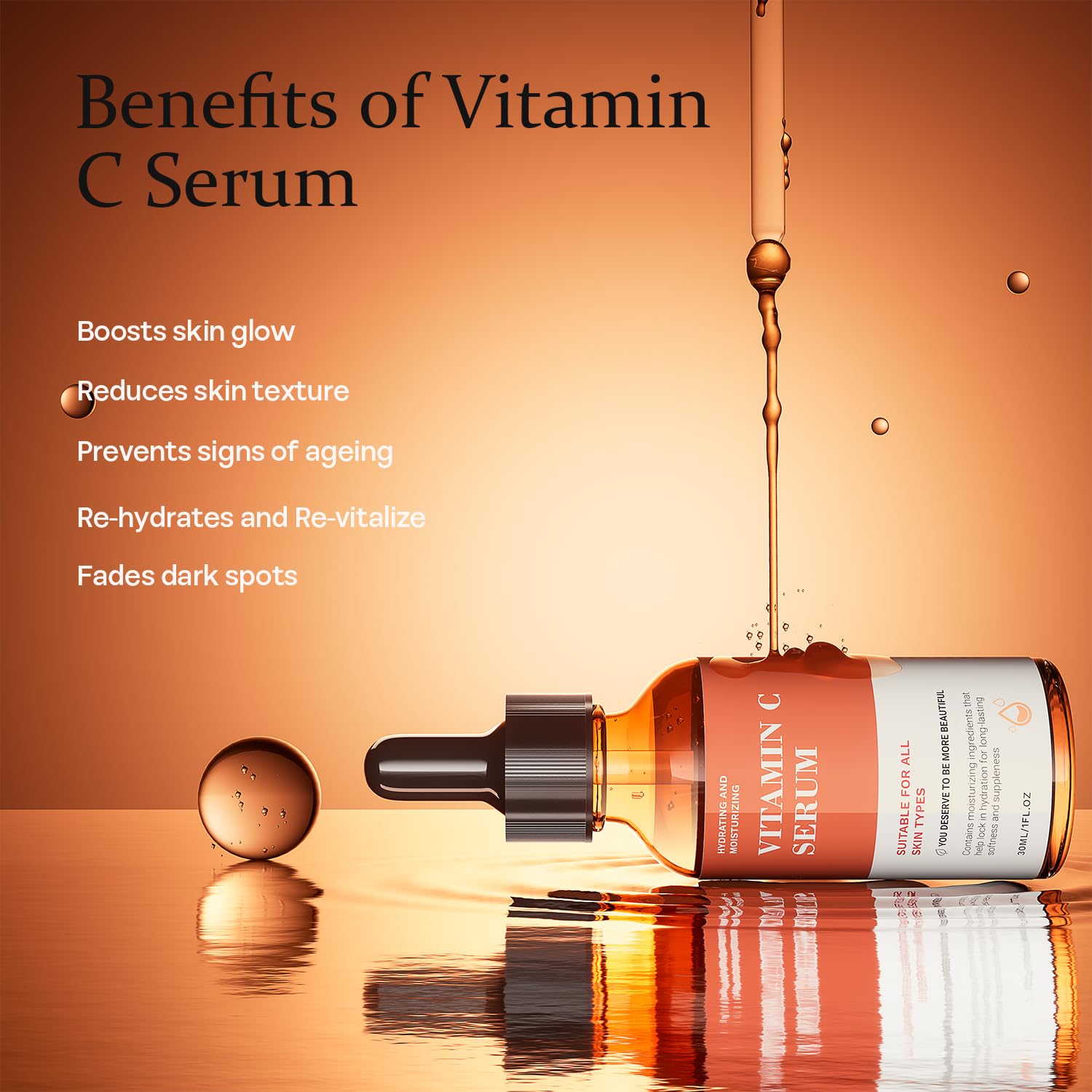 - LIGHTWEIGHT & FAST-ABSORBING FORMULA:This vitamin c face serum is crafted with a gentle, non-irritating formula that absorbs quickly into the skin, delivering instant hydration and nourishment without any greasy residue. Infused with soothing Glycerol and plumping Sodium Hyaluronate, it deeply penetrates the skin’s layers to lock in moisture and improve elasticity. Its fast-absorbing nature allows you to enjoy the benefits of vitamin c serum without any heaviness or stickiness, making it a must-have in your daily skincare routine.