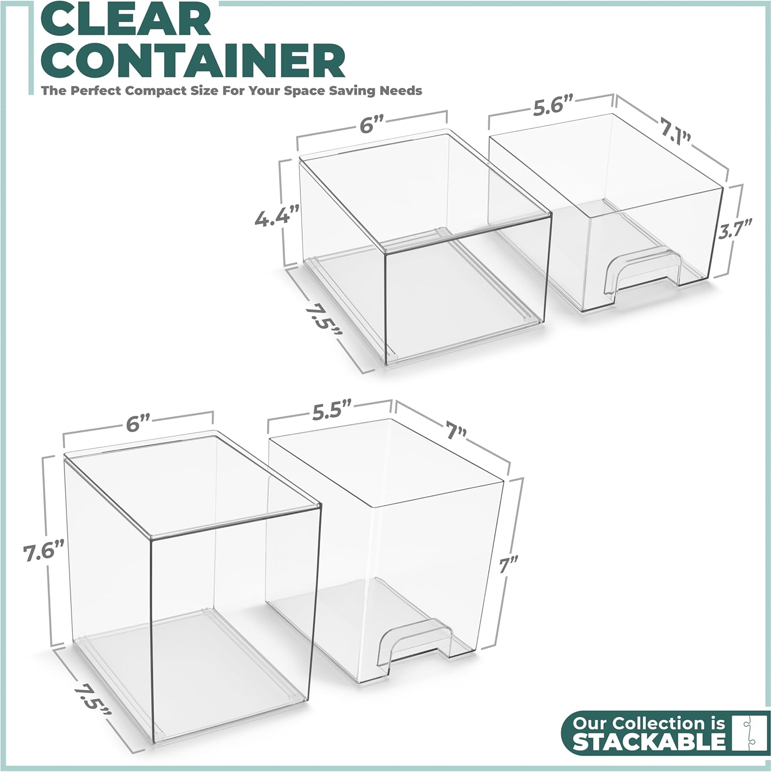 - Clear, Durable, and Stylish: Acrylic storage containers are made of BPA-free shatter-resistant acrylic. The simple and sleek design fits any décor. Clean your clear storage drawers easily with soap and warm water.
