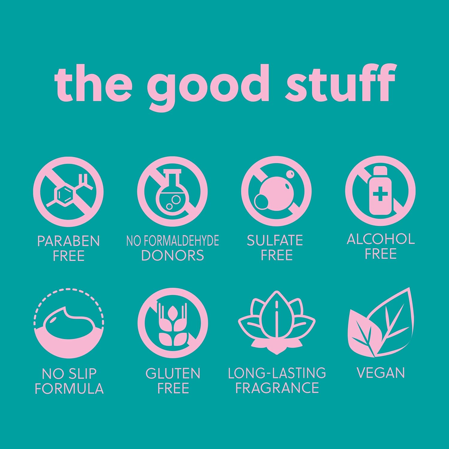 - Vegan, paraben-free, sulfate-free, alcohol-free, no formaldehyde donors, and long-lasting fragrance.