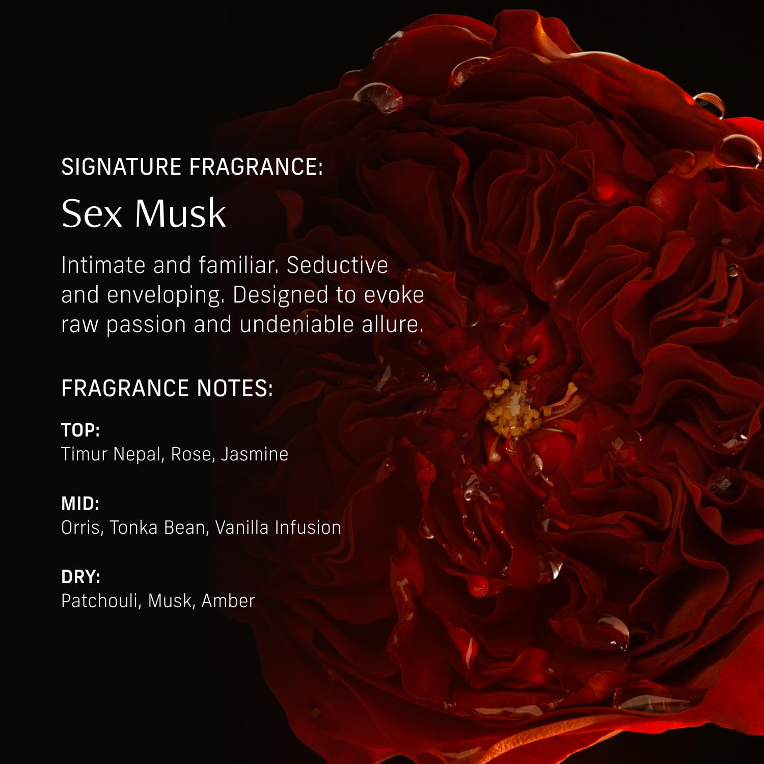 - SEX MUSK SCENT: Rose, tonka bean, and musk create a sensual and sophisticated blend of romantic florals, creamy warmth, and soft musk. We developed Sex Musk for an all-day scent that’s seductive, enveloping, and alluring.
