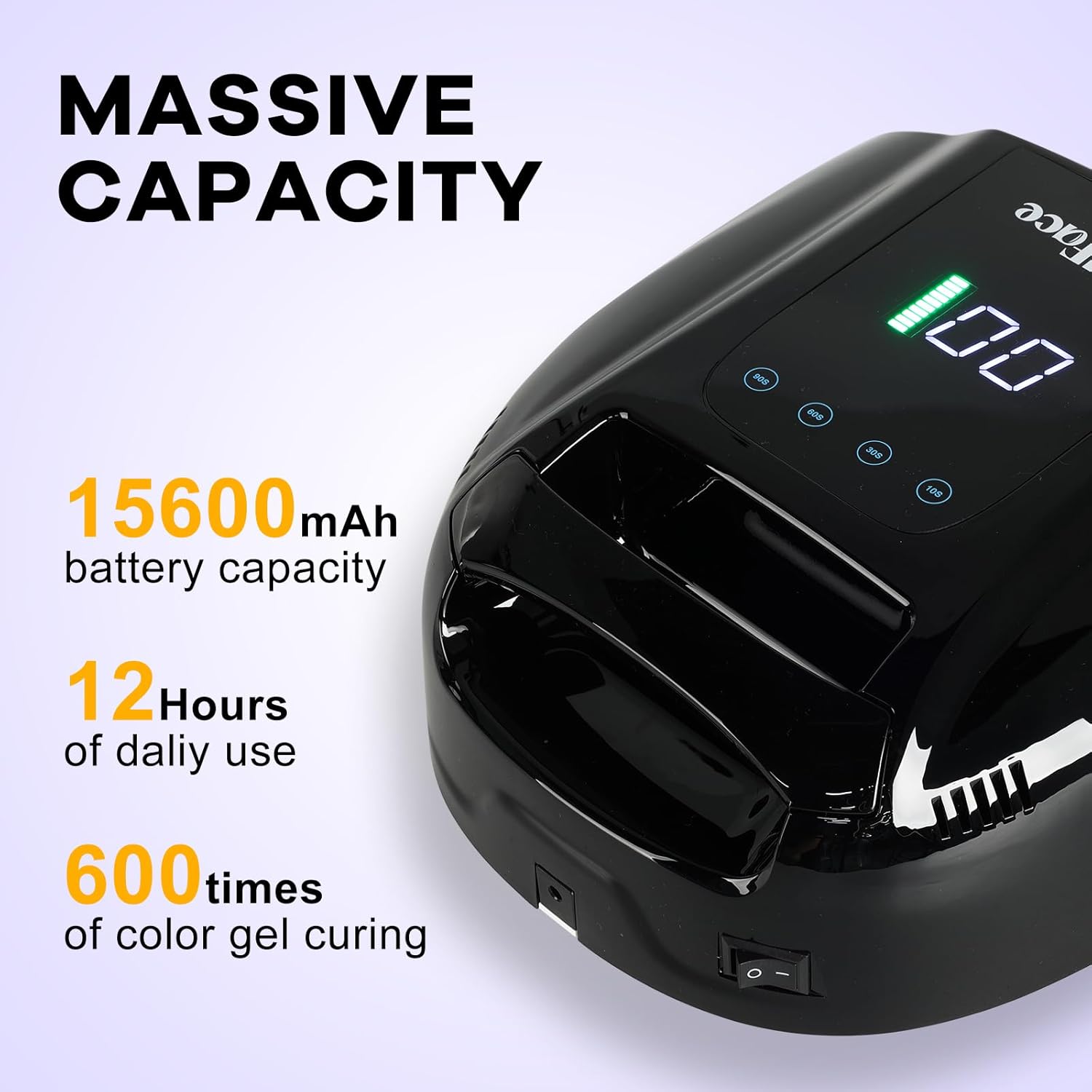 - High-Power Gel UV Light for Nails: 96W cordless UV nail lamp with 42 LED beads ensures rapid, even curing for gel polish and acrylics; Rechargeable LED nail lamp features a 15600mAh battery for 12 hours of cordless use with 3-4 hours charging