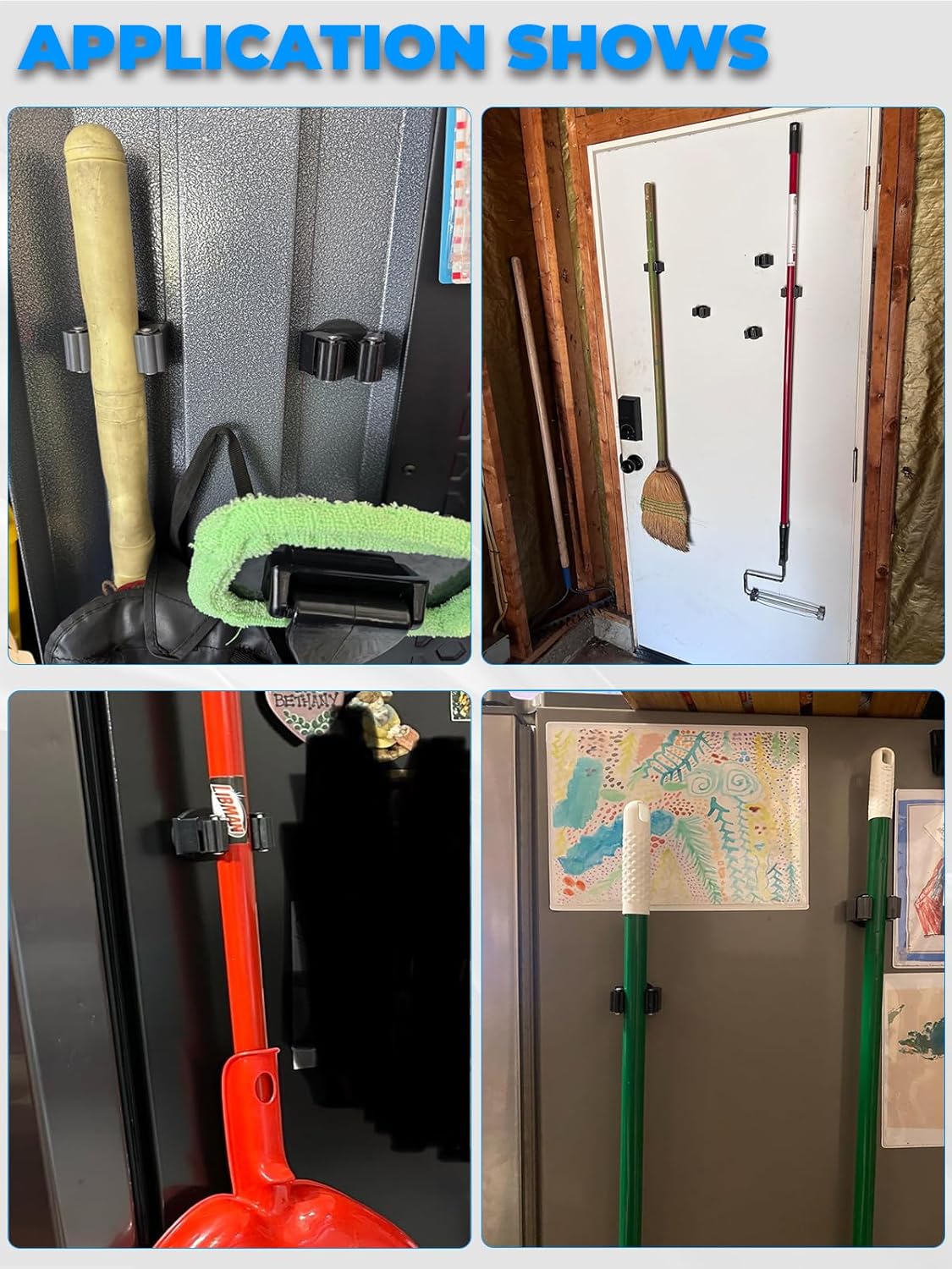- Wide Applications: Magnetic broom mount is designed to hold various household objects to save space, perfect for hang brooms, mops, brushes, baseball bats, etc. Widely use in kitchen, laundry, garage, workshop and outdoors for all your organizing needs!