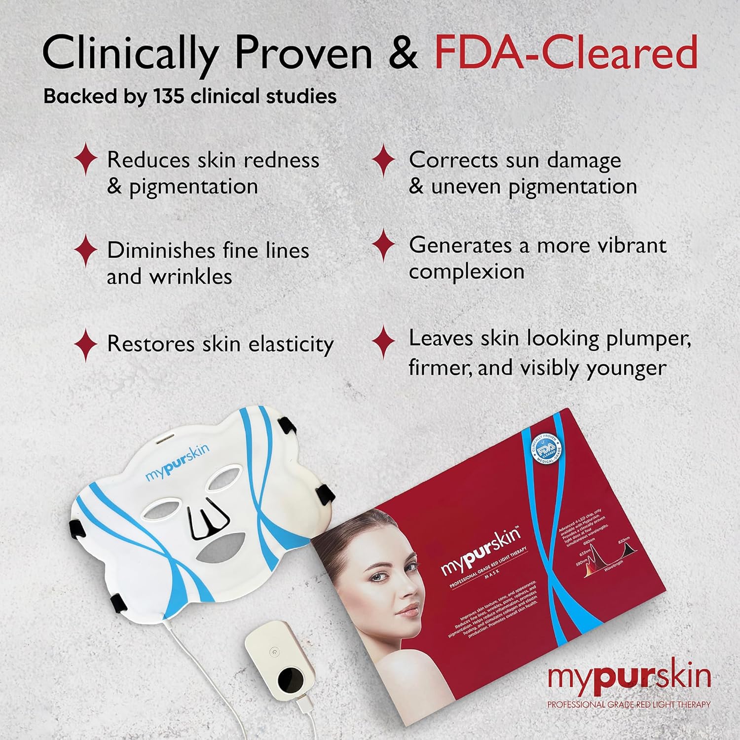 - ๐๐น๐ถ๐ป๐ถ๐ฐ๐ฎ๐น๐น๐ ๐ฃ๐ฟ๐ผ๐๐ฒ๐ป ๐ฅ๐ฒ๐ฑ ๐๐ถ๐ด๐ต๐ ๐ง๐ต๐ฒ๐ฟ๐ฎ๐ฝ๐ ๐ฎ๐ ๐๐ผ๐บ๐ฒ: Mypurskin mask, designed with dermatologists, delivers 53 mW/cmยฒ of powerful light to target wrinkles, boost elasticity, and restore a radiant glow. Experience faster, clinic-level results with 7.2โ14.4 J/cmยฒ per sessionโup to 50x more effective than standard masks. Reveal smoother, younger-looking skin in just minutes a day.