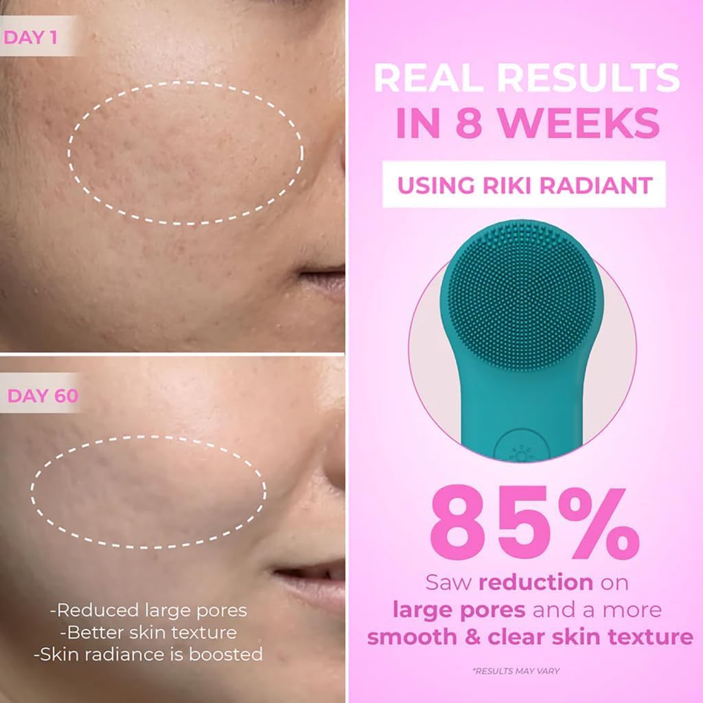 - Dual-Sided Design for 2-in-1 Skincare - Get the best of both worlds with the RIKI LOVES Silicone Facial scrubber. One side features fine, soft silicone bristles (in two sizes) for deep cleansing and gentle exfoliation. The other side delivers Heating, Cold Compress, and LED light therapy for a soothing spa experience—all in one stylish device.