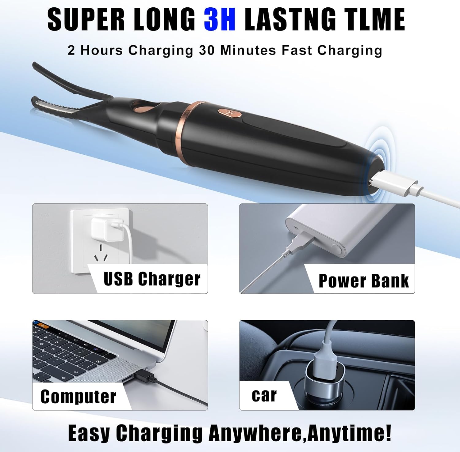 - Type-C Fast Charging and Portable - Type-C rechargeable heated lash curler with slim and compact design makes it ideal for taking on the go. An essential in every girl's makeup pouch. Best gift for women and girls