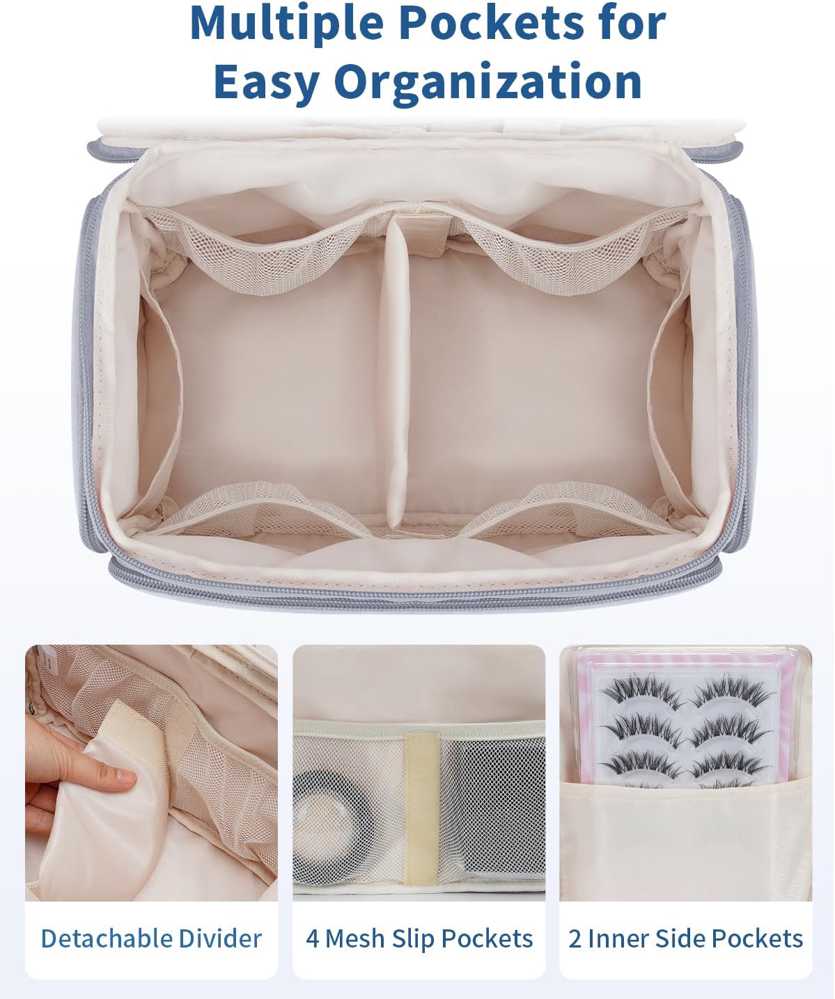 - 【Divided to Simplify】The wide-open main compartment features a removable divider, 4 mesh pockets, and 2 side slip pockets, allowing you to organize toiletries, cosmetics, and travel items by category.