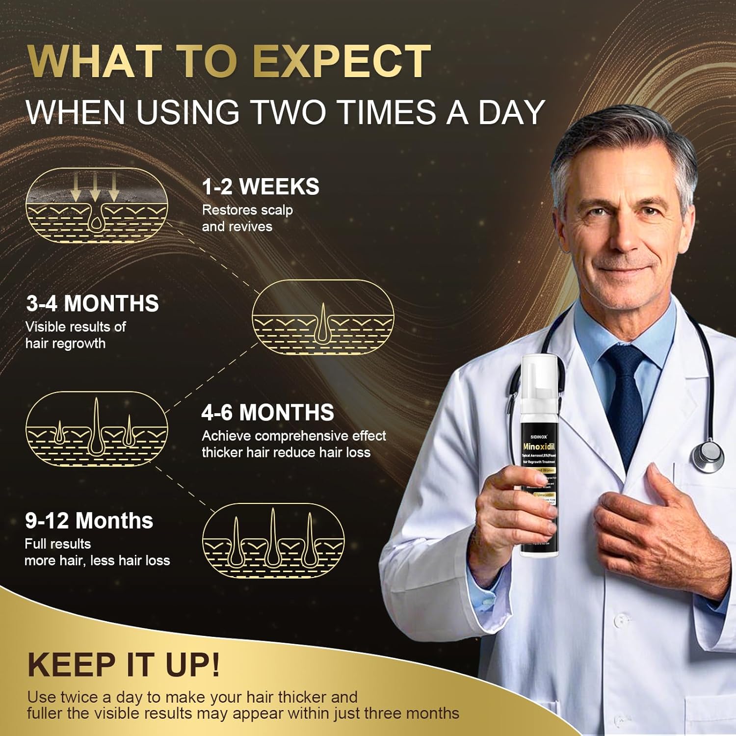 - 【5% Minoxidil Foam】: Our new upgraded 2.0 formula contains 5% minoxidil, clinically proven to deliver maximum-strength hair regrowth. This fragrance-free topical foam significantly increases hair thickness and volume, effectively addressing hair loss or thinning for men and women.