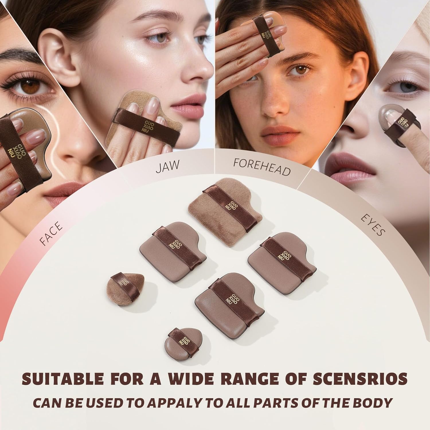 - Full face coverage: Say goodbye to the limitations of traditional triangular powder puffs! The guoxianiu powder puff is ergonomically designed with soft edges that won't scratch, protecting your eyes and skin. The irregular contour perfectly fits every curve of the face, precisely covering details such as the nostrils and under the eyes, reducing the gaps and significantly improving the accuracy of makeup application.