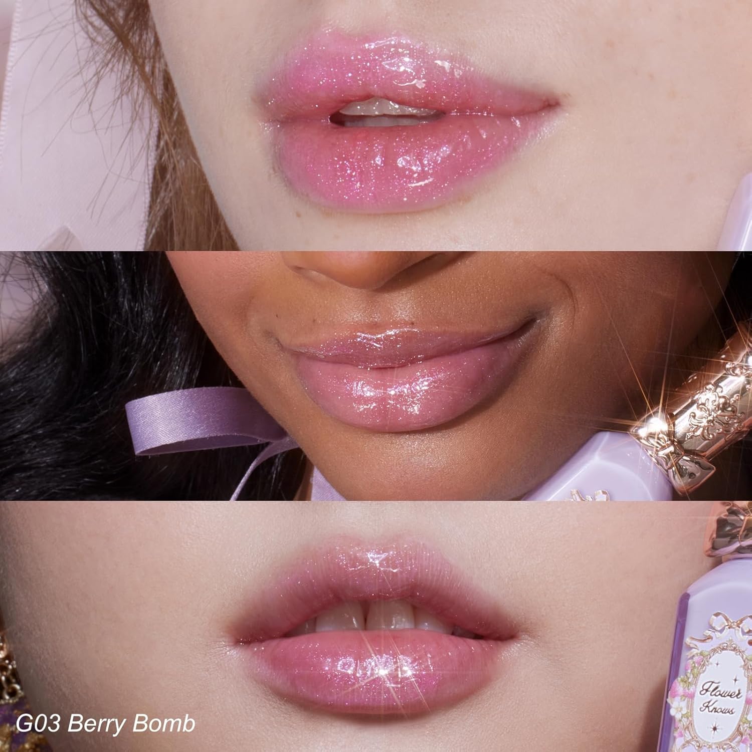 - Moisturizing Tinted Plumping Lip Gloss:Experience beautifully fuller lips with Flower Knows Violet Strawberry Rococo Glowy Lip Gloss.This luscious,non-sticky formula offers a transparent, jelly-like finish that enhances your natural beauty